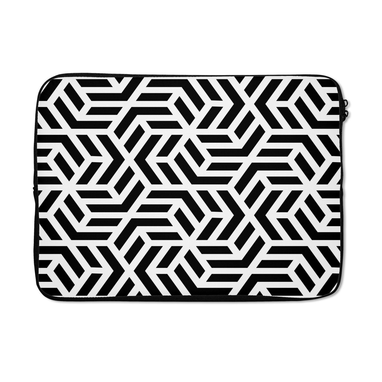 Suchen Sie eine schöne Laptoptasche? Dann ist dies genau das Richtige für Sie! Diese Laptoptasche ist mit einem geometrischen Muster versehen. Dank ihrer schwarz-weißen Farbe passt diese Schutzhülle zu jedem Laptop.