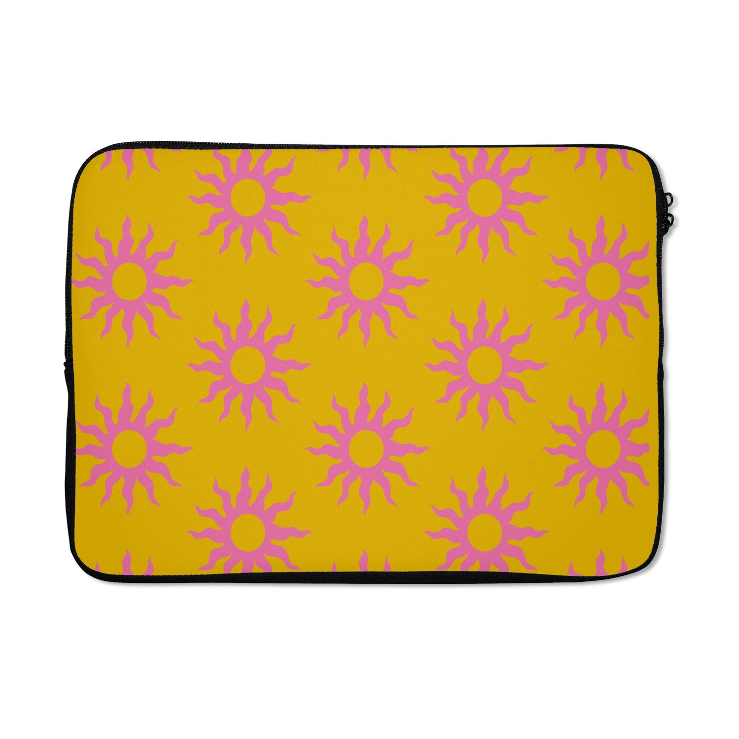 Ein gelber Hintergrund mit rosa Sonnen.