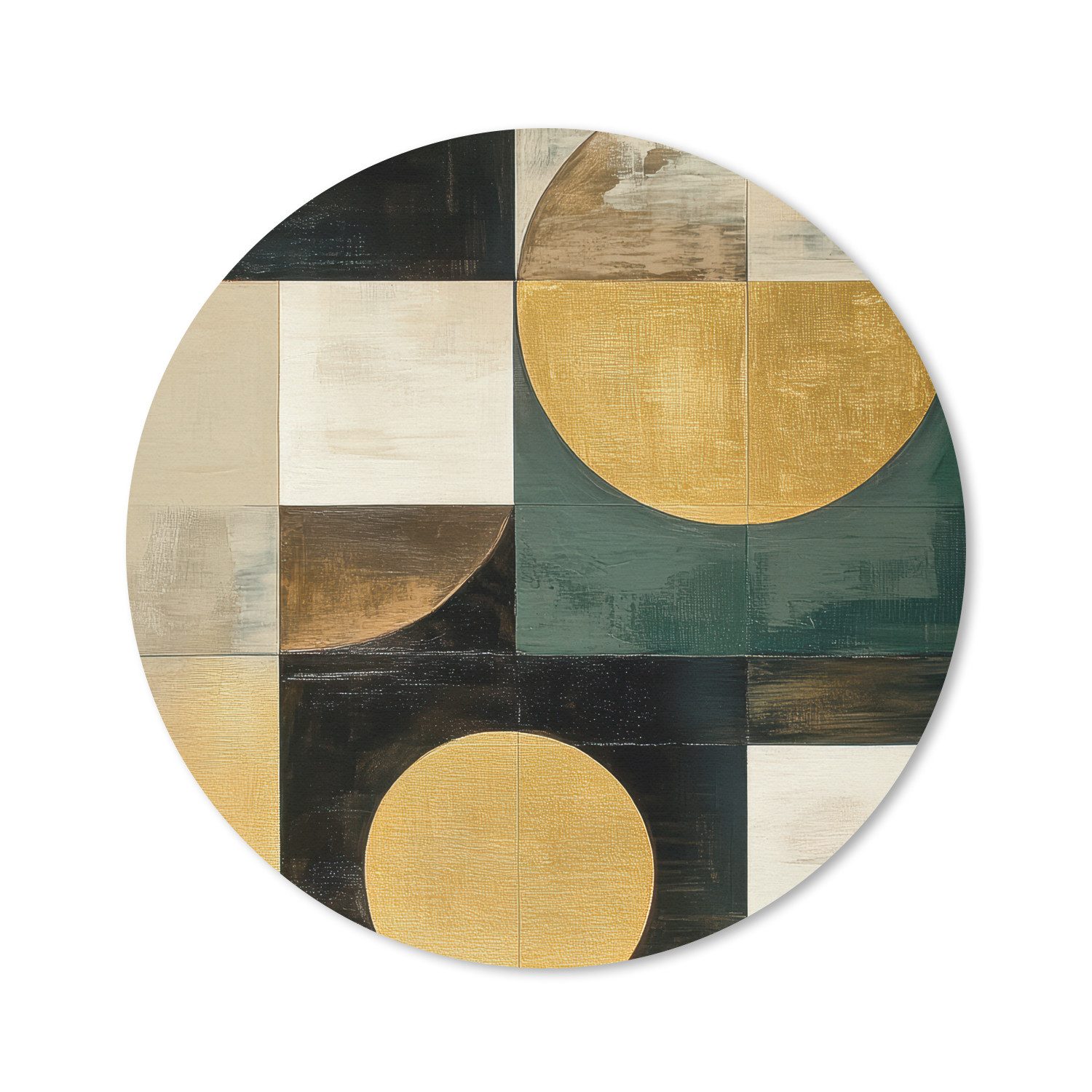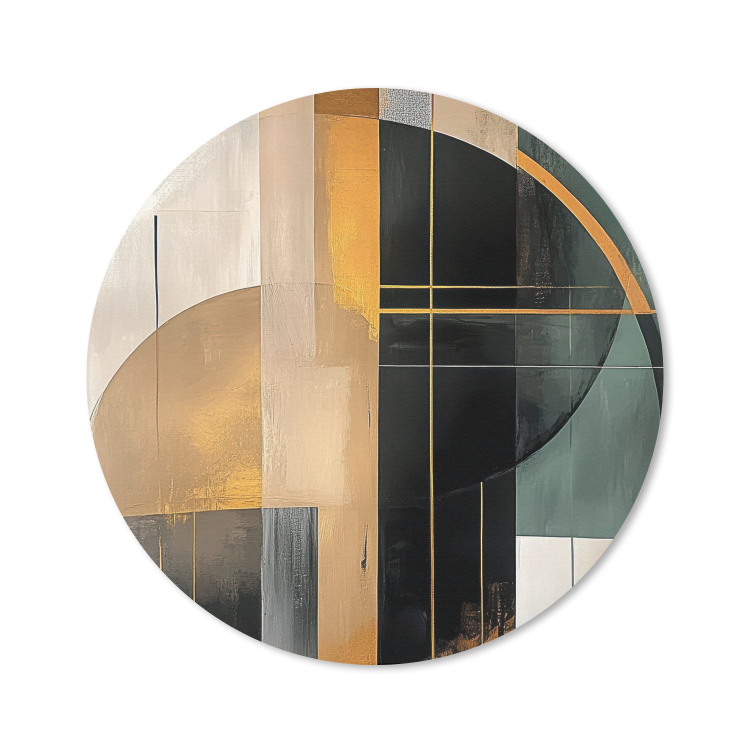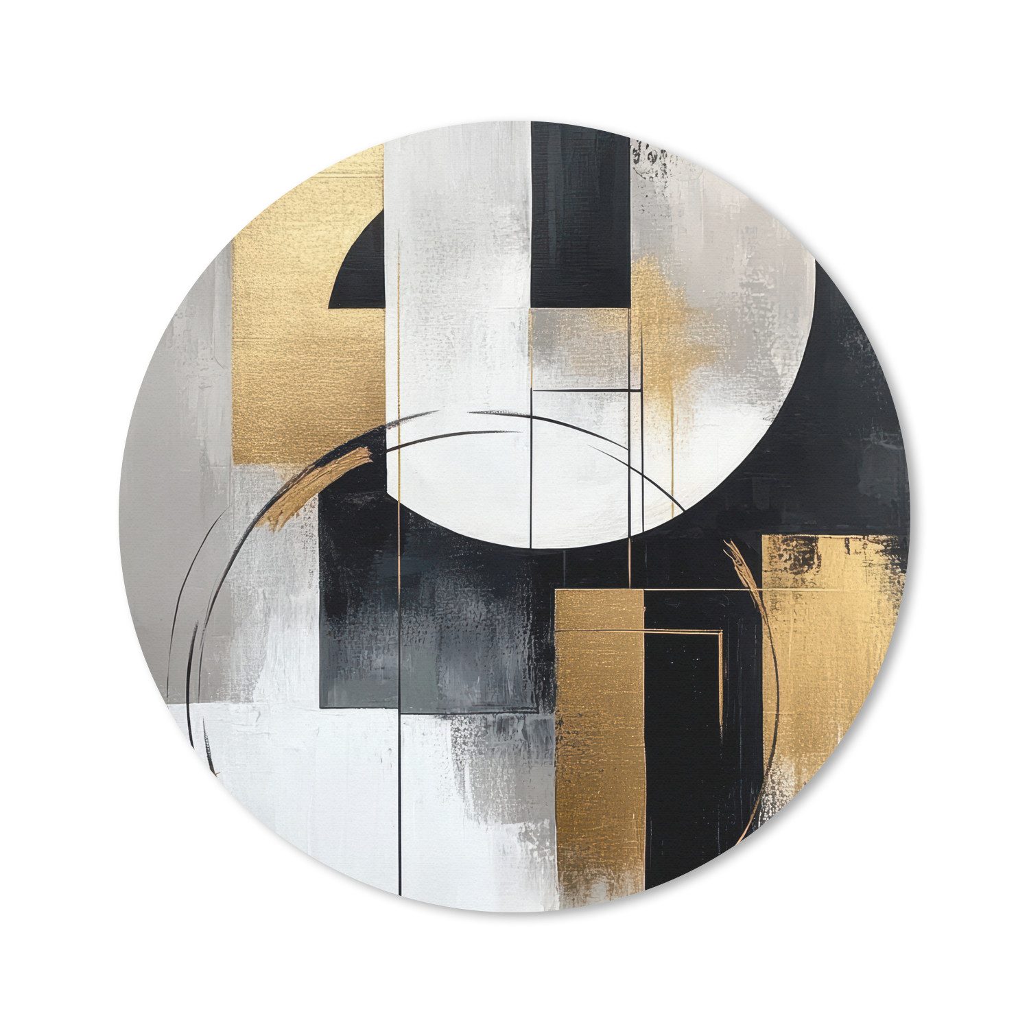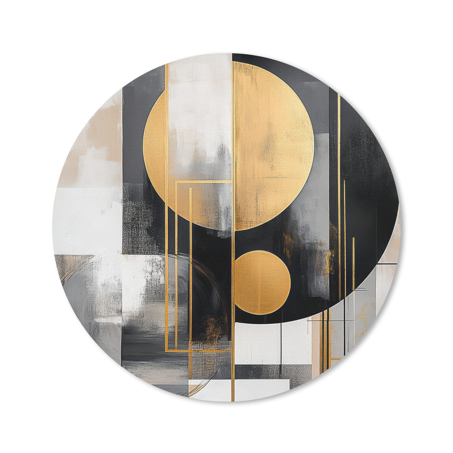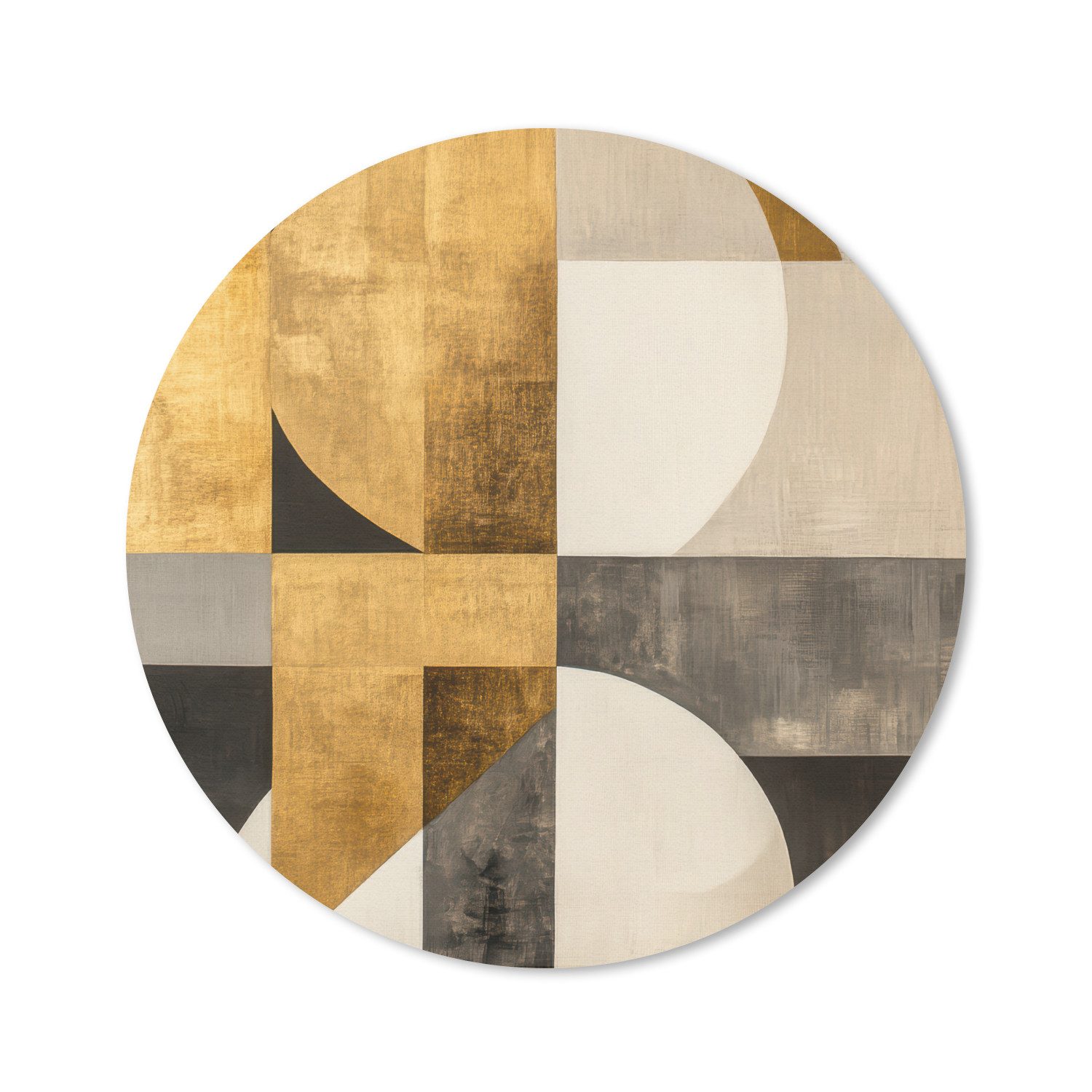 Abstraktes Bild mit verschiedenen Formen in Gold, Grau und Schwarz.