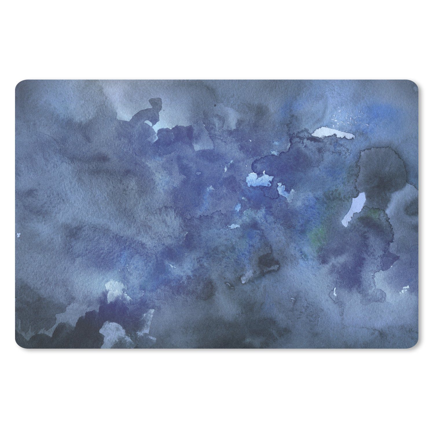 Abstrakte Aquarellmalerei eines Himmels mit blauen und grauen Schattierungen.
