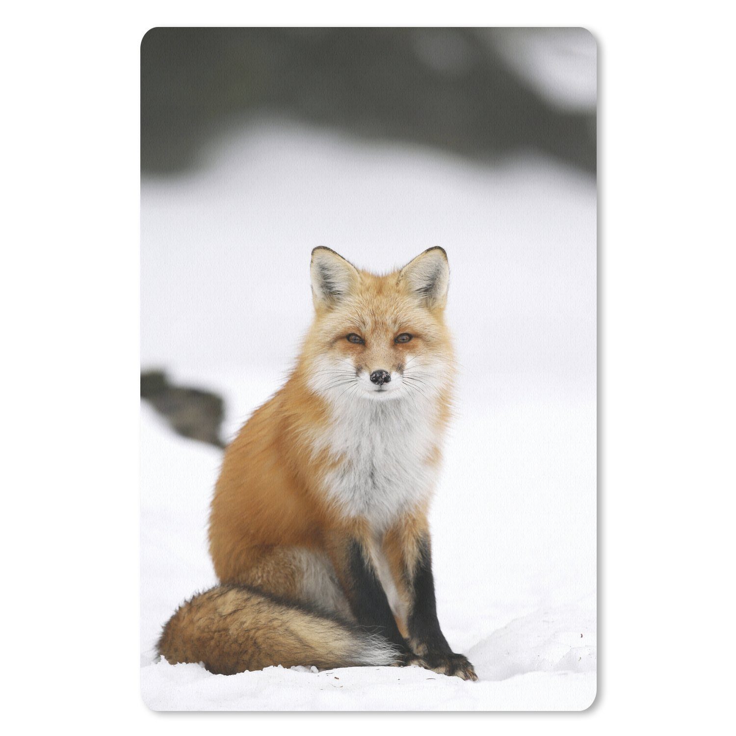 Der Fuchs ist im Schnee und die Jahreszeit ist Winter.