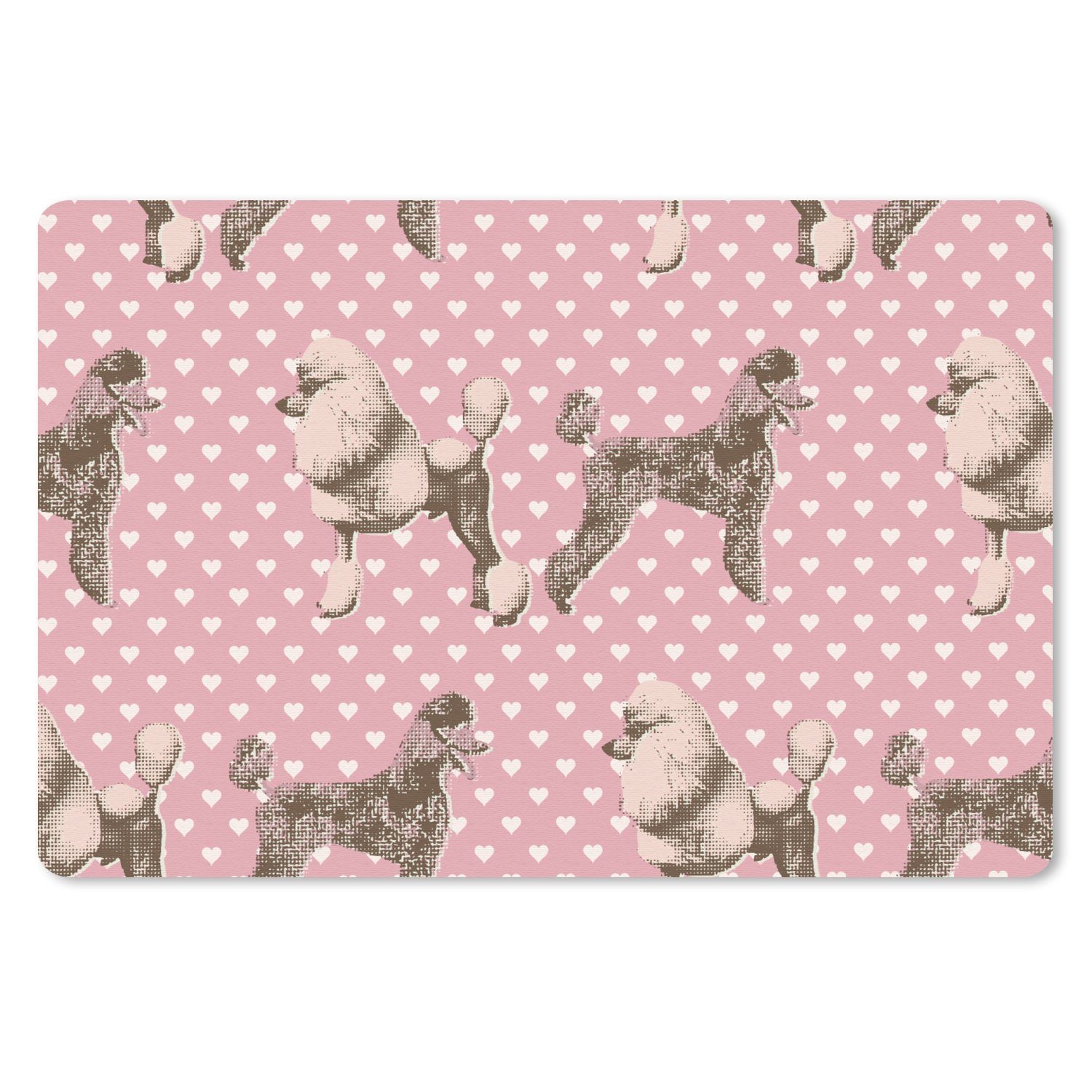 Design mit Bildern von alten Pudeln vor einem Hintergrund aus Herzen.