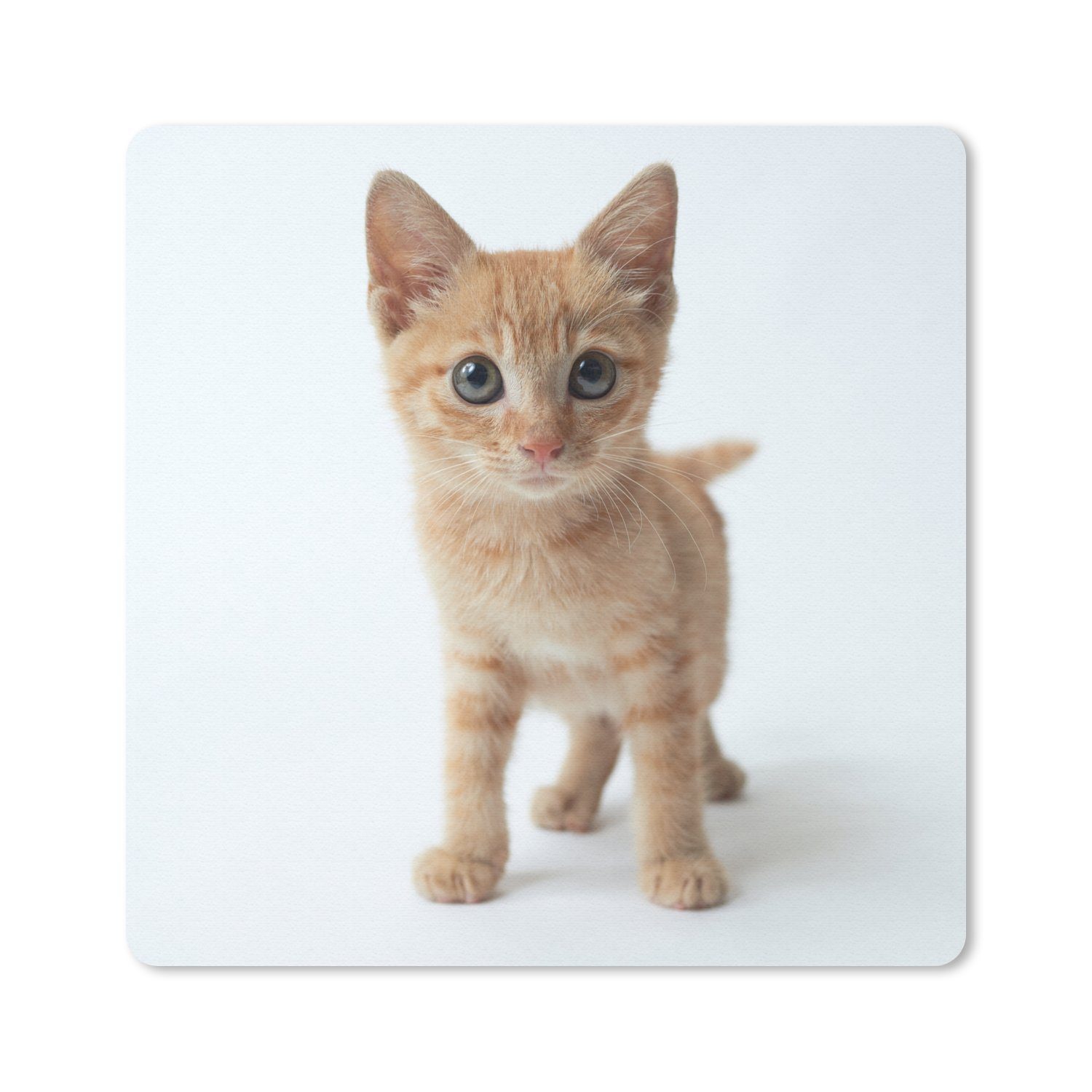 Ein rotes Kätzchen ist auf einem weißen Hintergrund abgebildet.