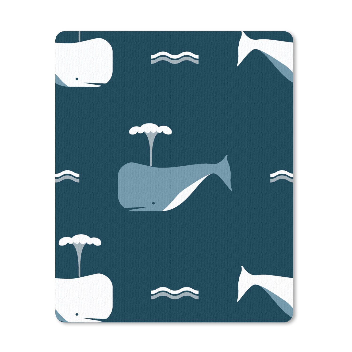 Muster eines Wals, der vor einem dunkelblauen Hintergrund Wasser versprüht.