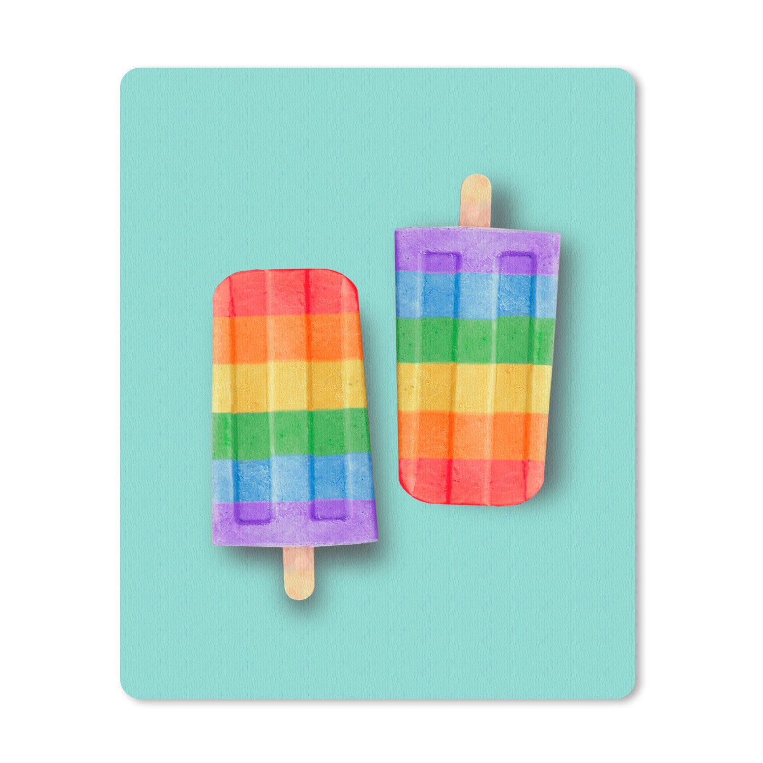 Zwei verschiedenfarbige Wassereisen liegen nebeneinander auf einem blauen Hintergrund.