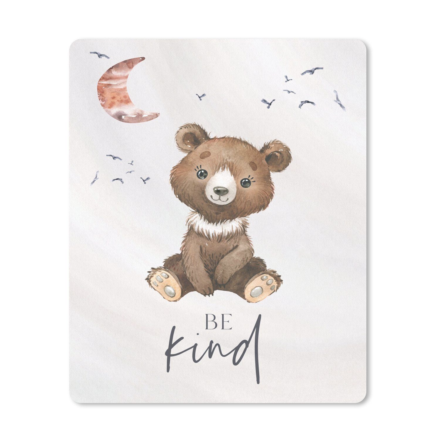 Eine Mondsichel, ein Bär und das Zitat: "Sei freundlich".
