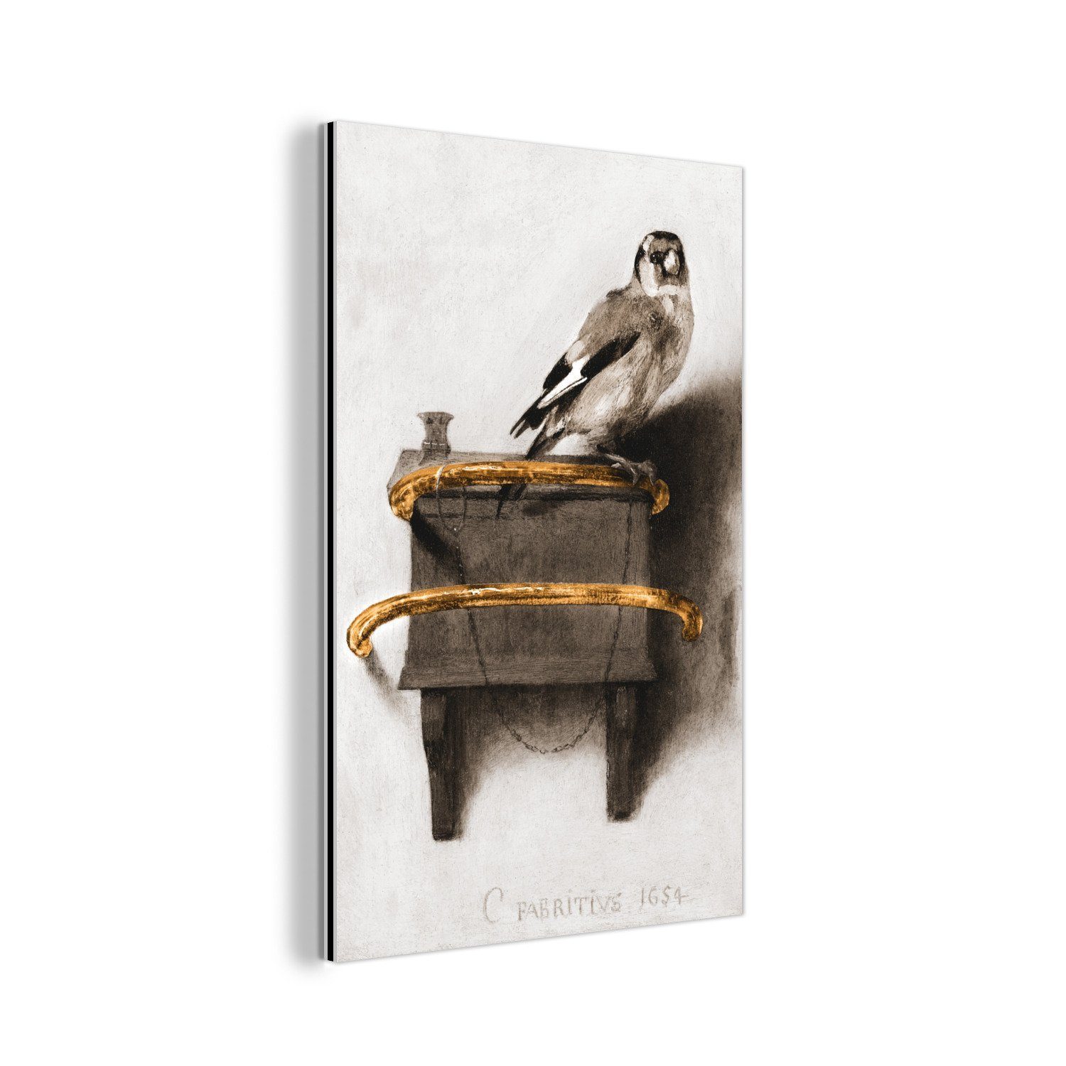 Über das Bild: Das Gemälde "Der Stieglitz" des Altmeisters Carel Fabritius ist mit Details in Gold versehen. Das Gold verleiht dem Gemälde ein luxuriöses Aussehen.