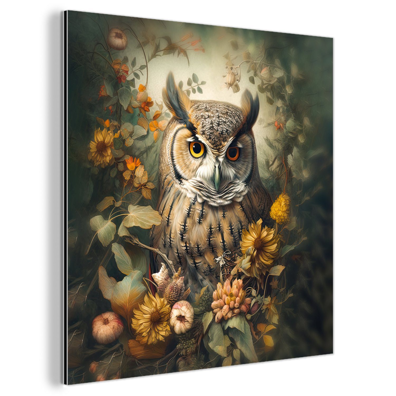 Über das Bild: Das Bild zeigt die Illustration einer Eule, die von Blumen umgeben ist.