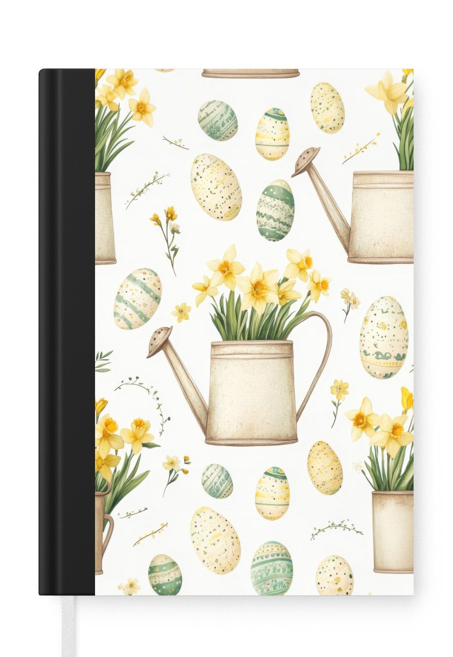 Ein Muster mit einer alten Gießkanne, gefüllt mit gelben Narzissen, durchsetzt mit grün-weiß dekorierten Ostereiern. Die sanften, natürlichen Farbtöne sorgen für eine frische und rustikale Frühlingsatmosphäre.Anzahl Seiten | 99 Seiten |
