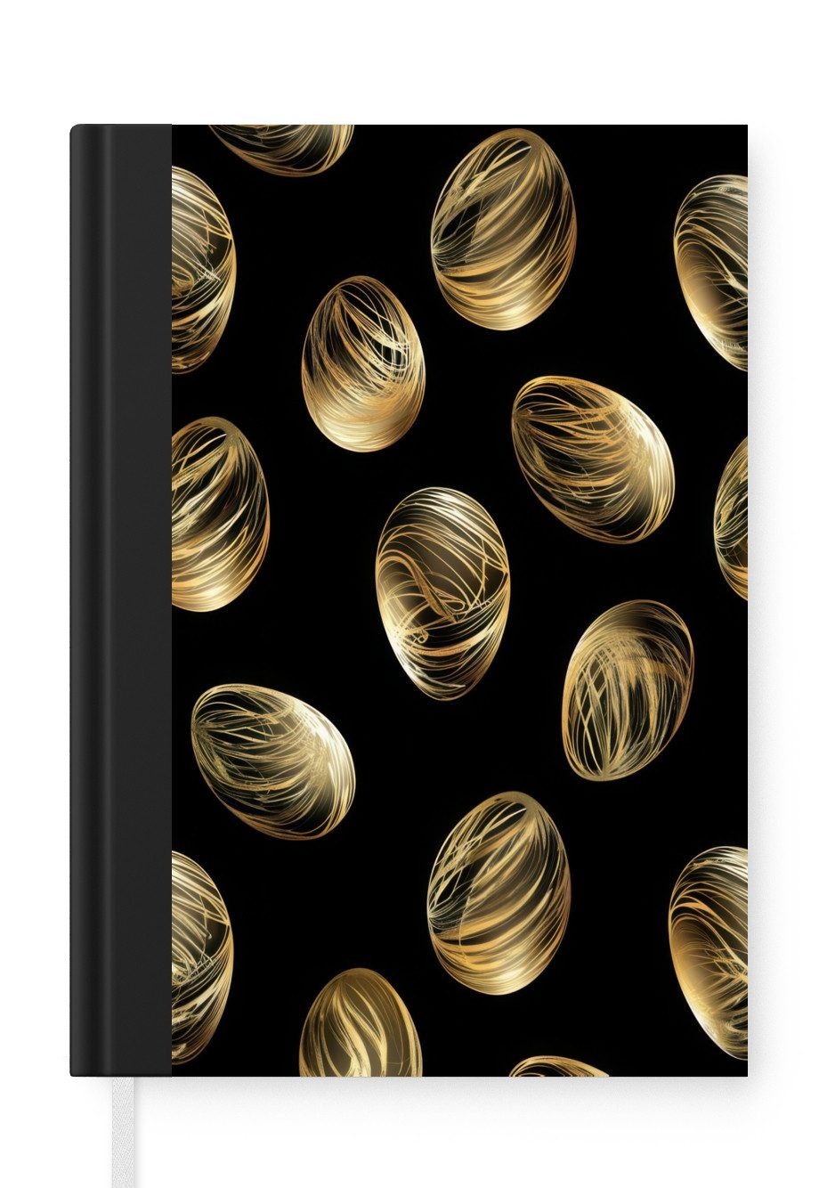 Das Notizbuch hat ein Hardcover und ist mit einer schwarzen Bindung versehen. Diese Bindung in Wildlederoptik verleiht ihm einen luxuriösen Look. Durch die schwarze Bindung hat das Notizbuch eine teilweise schwarze Rückseite. Dank seiner kompakten Размер lässt sich das Hardcover-Notizbuch leicht mitnehmen.