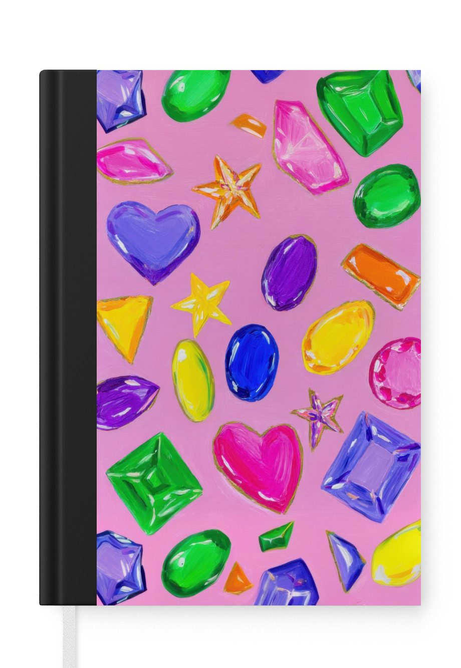 Verschiedene Formen von Edelsteinen in leuchtenden Farben sind auf einem rosa Hintergrund verstreut. Herz-, Stern- und ovale Formen sorgen für einen verspielten Look.Anzahl Seiten | 99 Seiten |