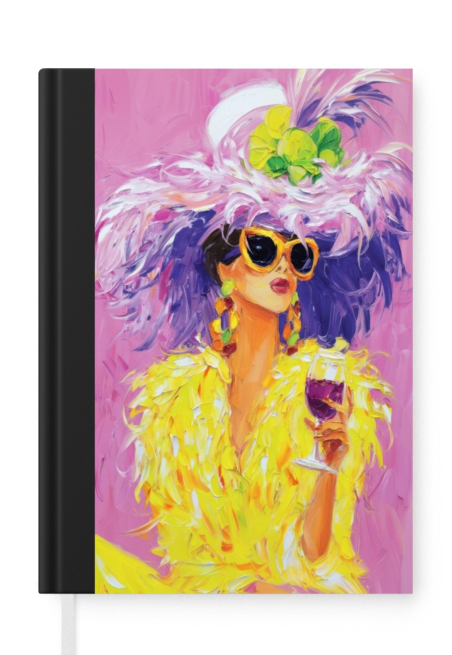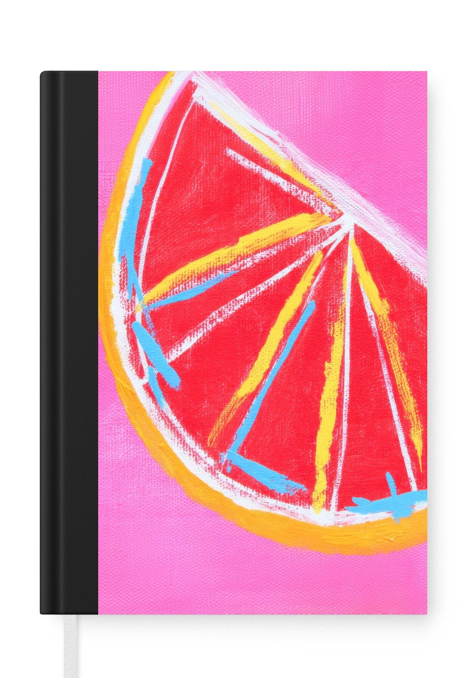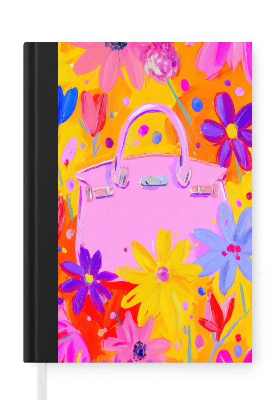 Das Notizbuch hat ein Hardcover und ist mit einer schwarzen Bindung versehen. Diese Bindung in Wildlederoptik verleiht ihm einen luxuriösen Look. Durch die schwarze Bindung hat das Notizbuch eine teilweise schwarze Rückseite. Dank seiner kompakten Размер lässt sich das Hardcover-Notizbuch leicht mitnehmen.