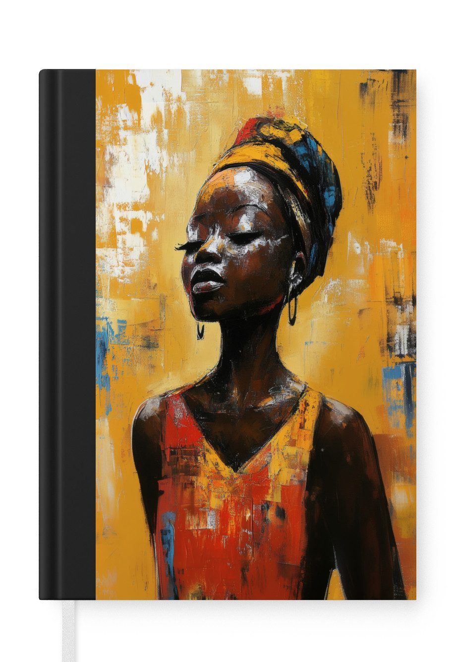 Das Notizbuch hat ein Hardcover und ist mit einer schwarzen Bindung versehen. Diese Bindung in Wildlederoptik verleiht ihm einen luxuriösen Look. Durch die schwarze Bindung hat das Notizbuch eine teilweise schwarze Rückseite. Dank seiner kompakten Размер lässt sich das Hardcover-Notizbuch leicht mitnehmen.