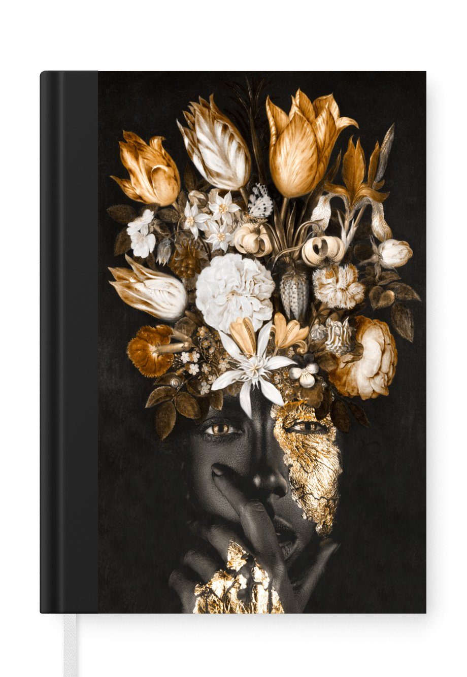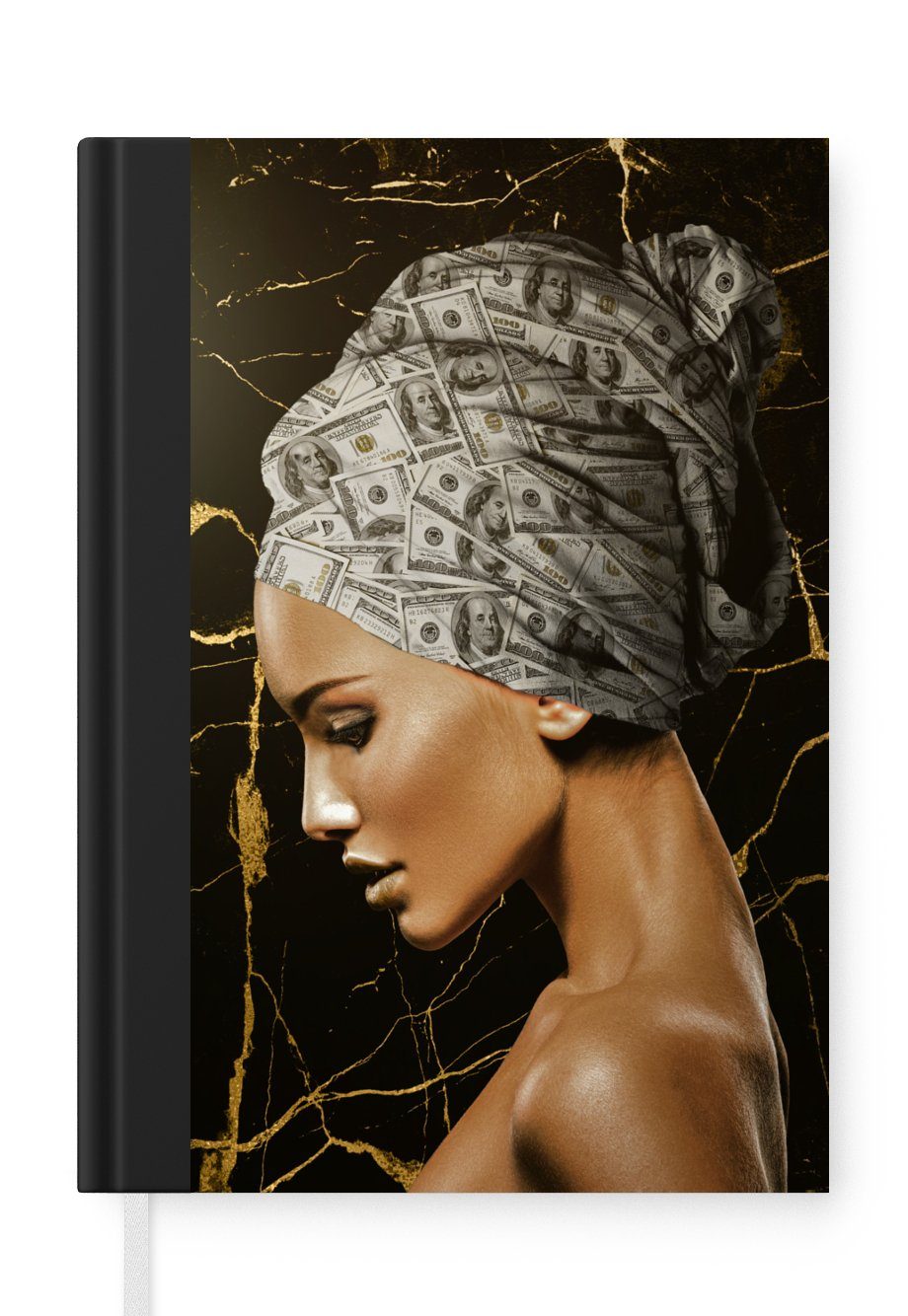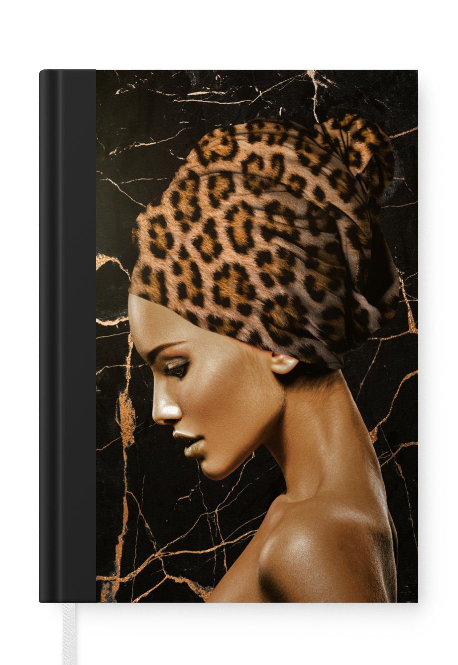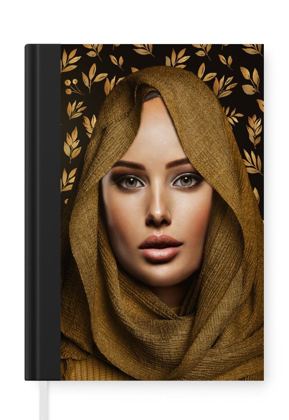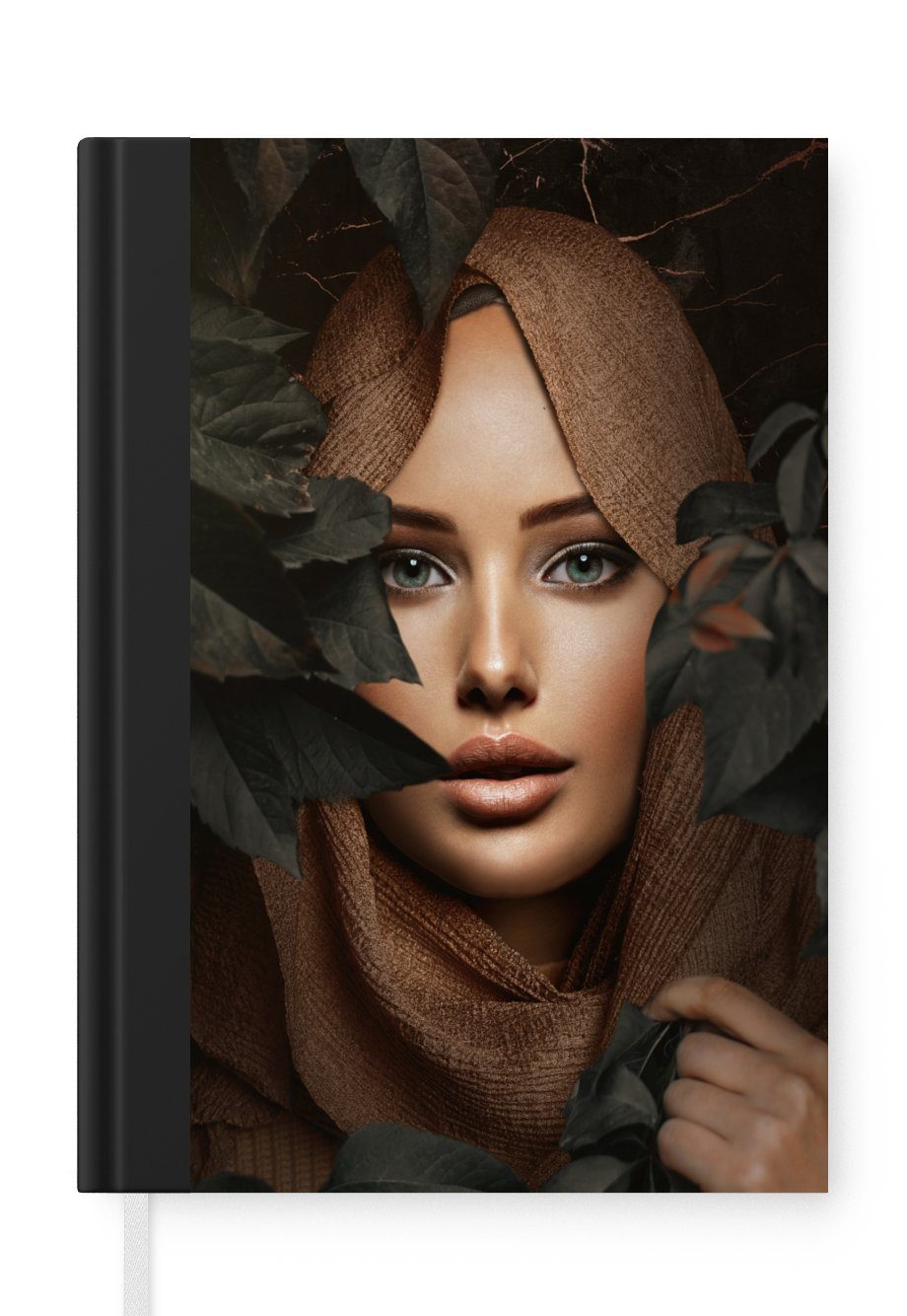 Das Notizbuch hat ein Hardcover und ist mit einer schwarzen Bindung versehen. Diese Bindung in Wildlederoptik verleiht ihm einen luxuriösen Look. Durch die schwarze Bindung hat das Notizbuch eine teilweise schwarze Rückseite. Dank seiner kompakten Размер lässt sich das Hardcover-Notizbuch leicht mitnehmen.