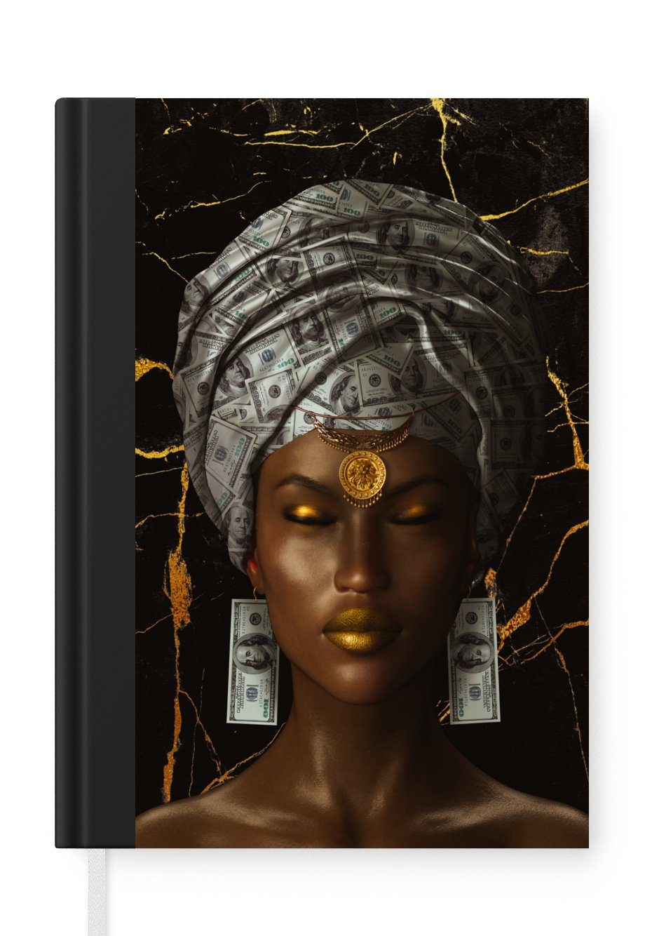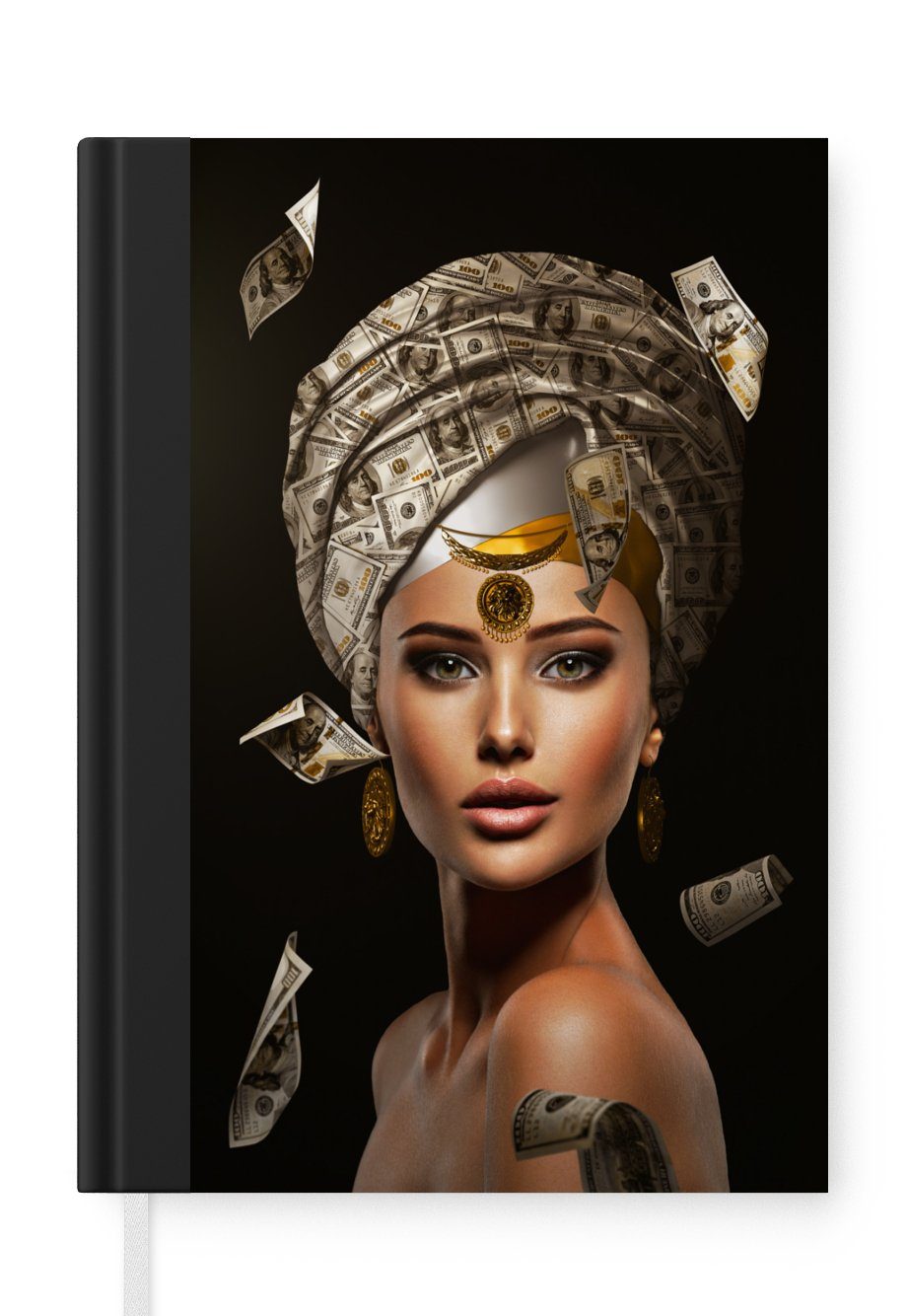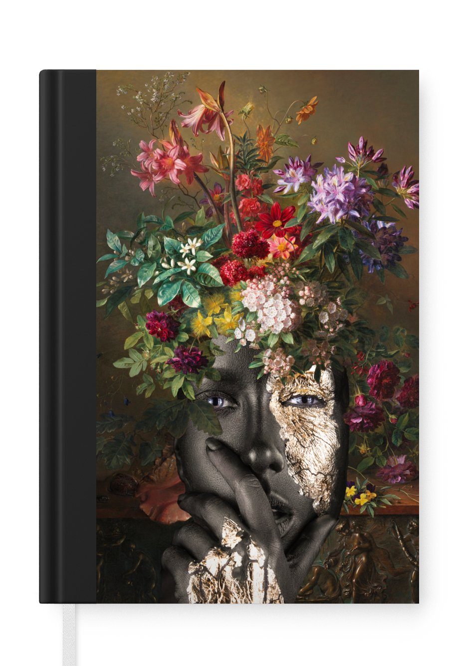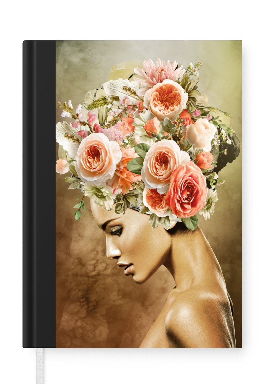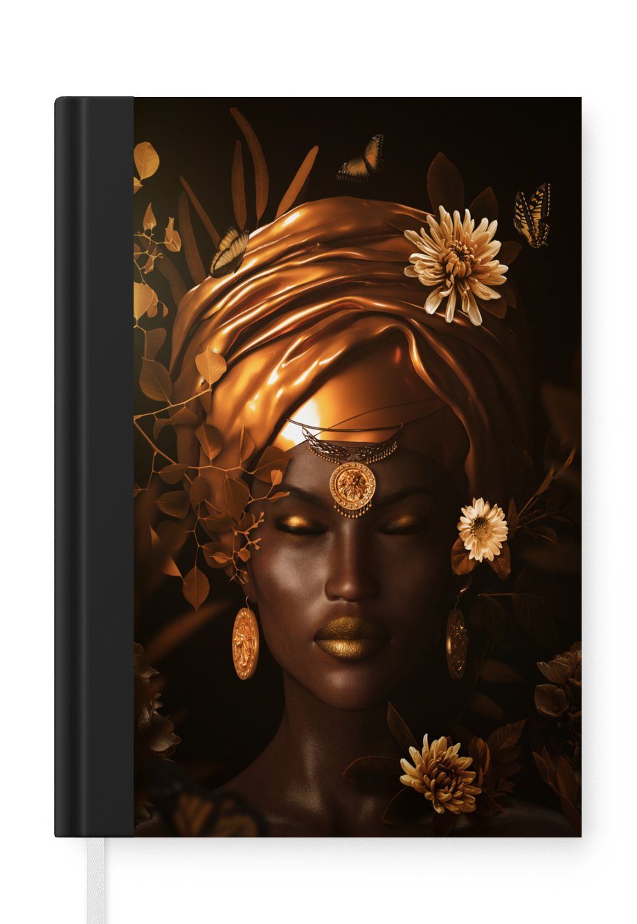Das Notizbuch hat ein Hardcover und ist mit einer schwarzen Bindung versehen. Diese Bindung in Wildlederoptik verleiht ihm einen luxuriösen Look. Durch die schwarze Bindung hat das Notizbuch eine teilweise schwarze Rückseite. Dank seiner kompakten Размер lässt sich das Hardcover-Notizbuch leicht mitnehmen.