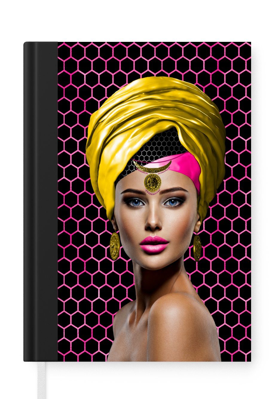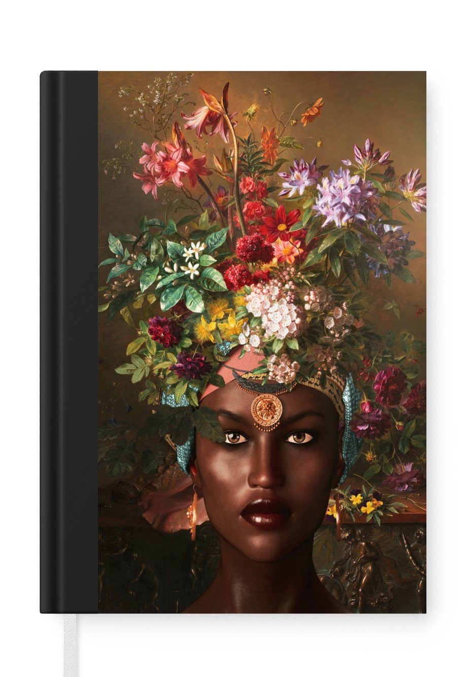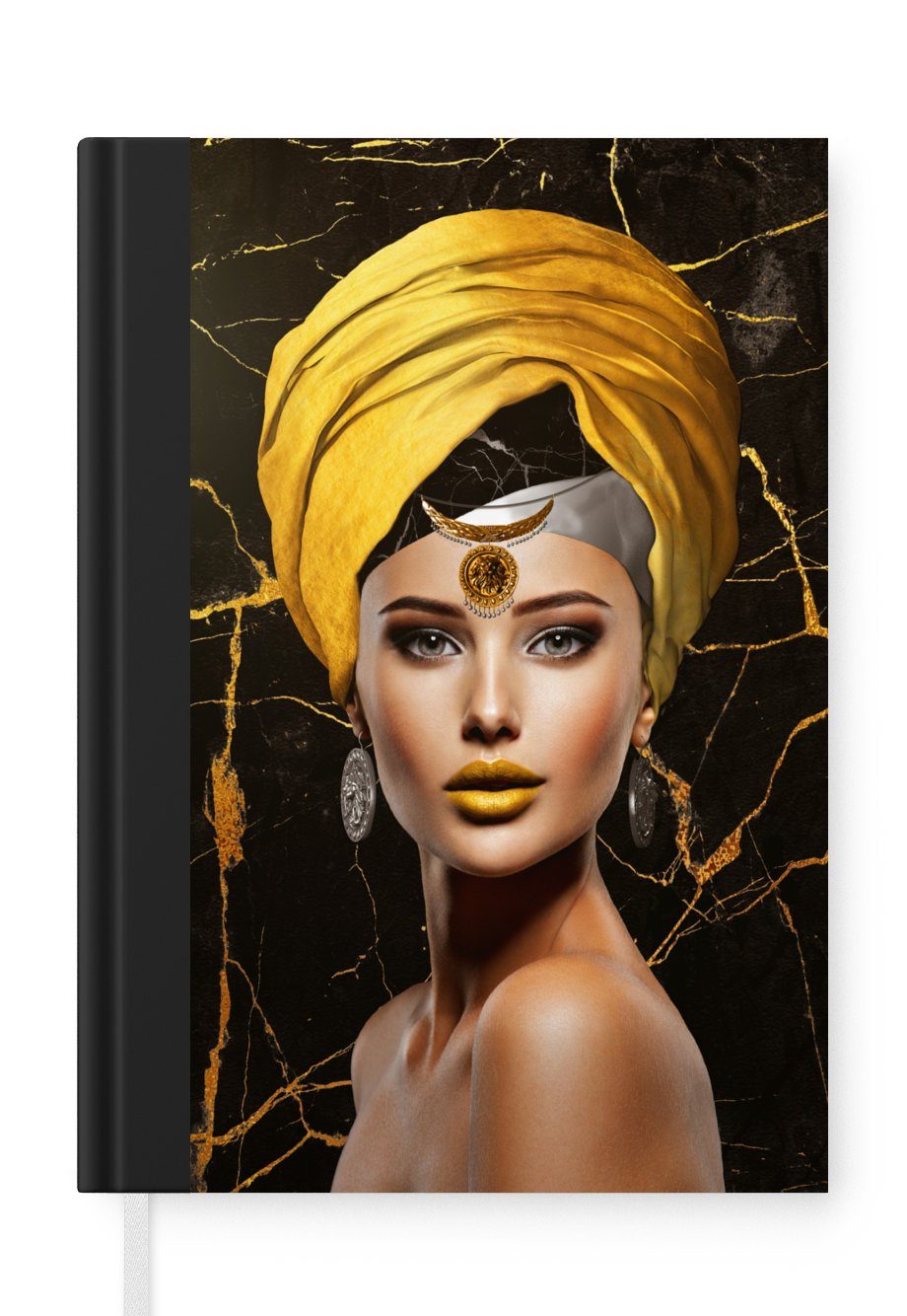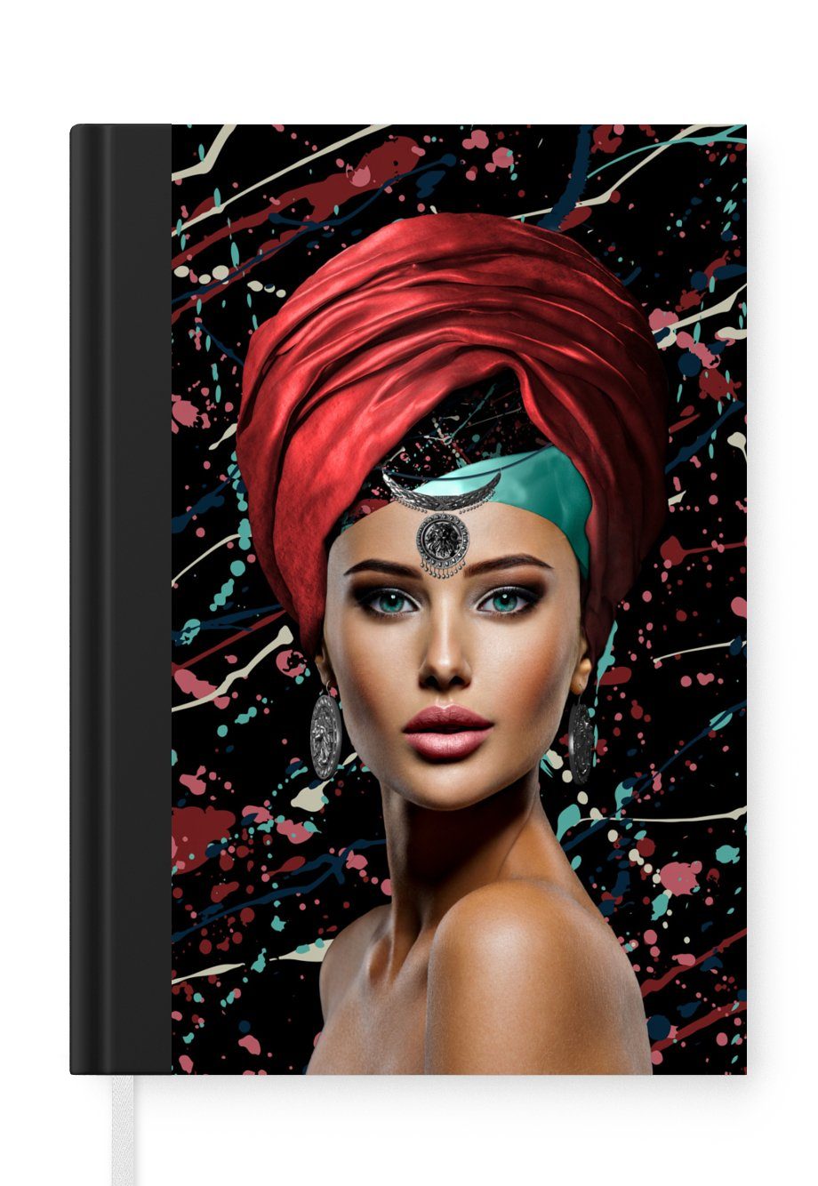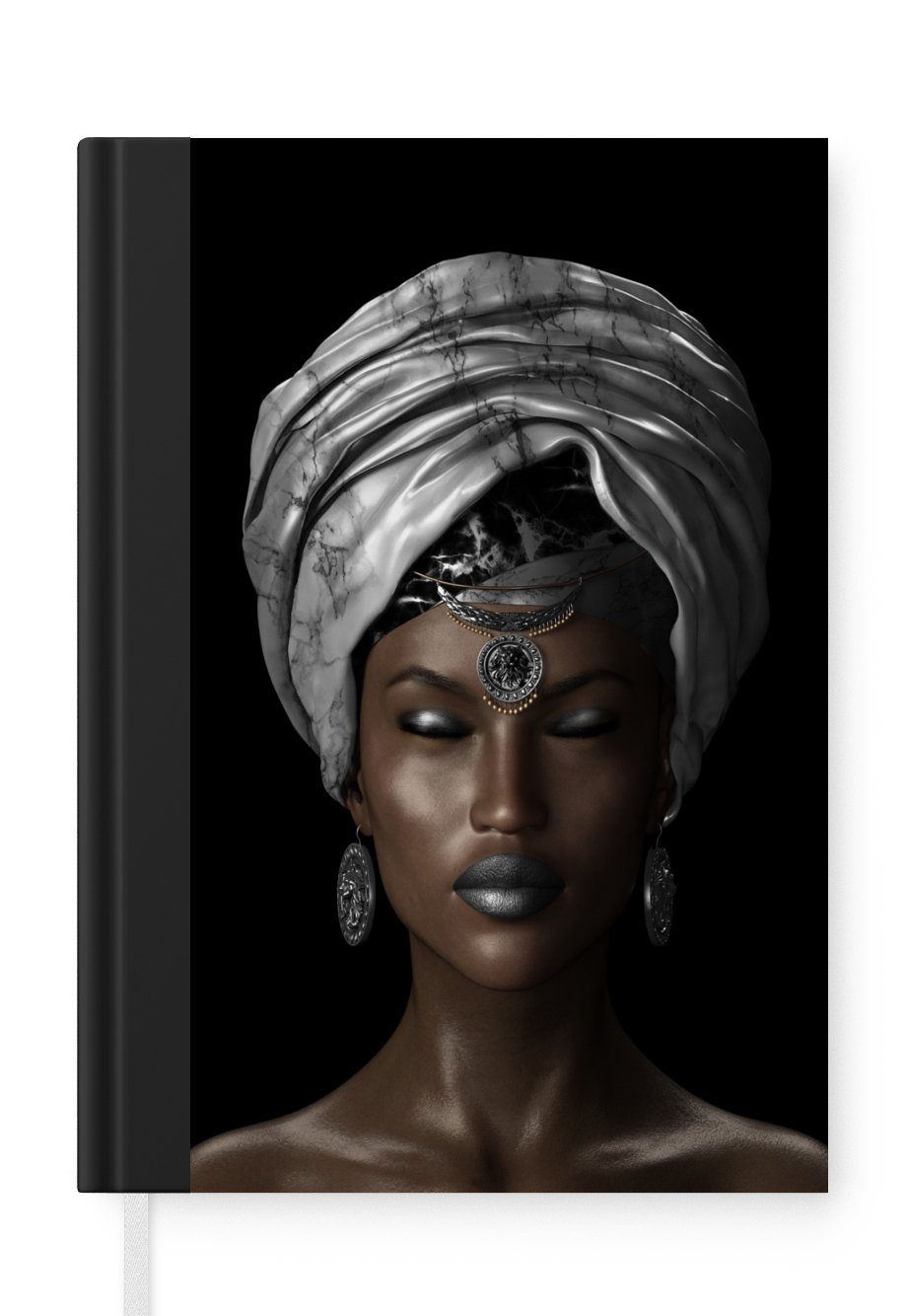 Das Notizbuch hat ein Hardcover und ist mit einer schwarzen Bindung versehen. Diese Bindung in Wildlederoptik verleiht ihm einen luxuriösen Look. Durch die schwarze Bindung hat das Notizbuch eine teilweise schwarze Rückseite. Dank seiner kompakten Размер lässt sich das Hardcover-Notizbuch leicht mitnehmen.