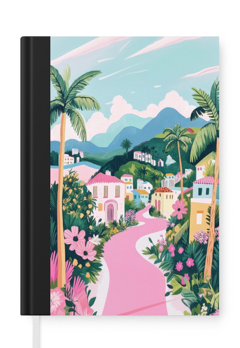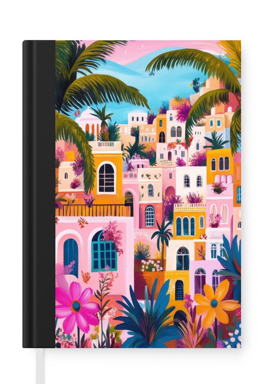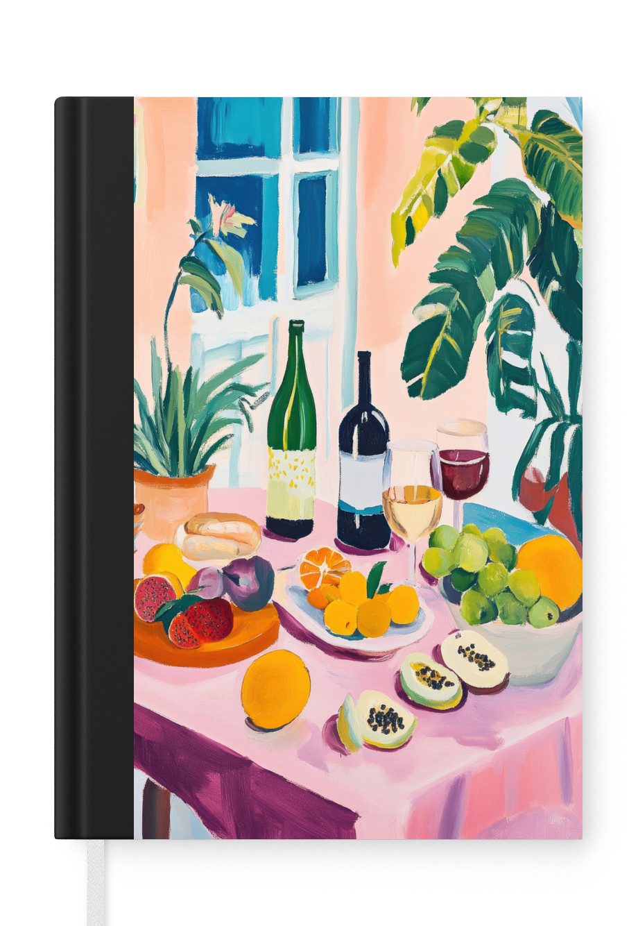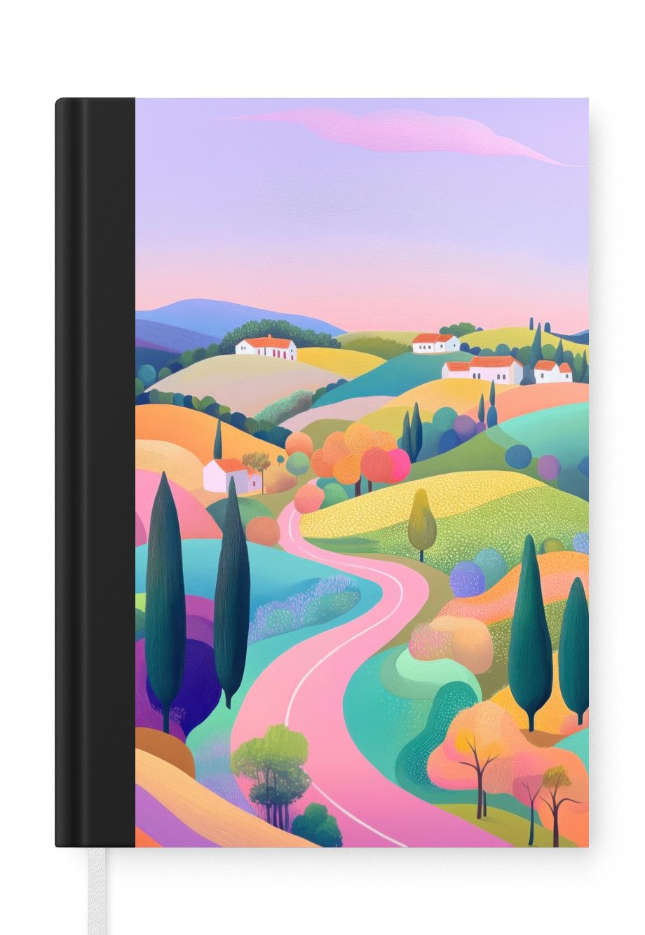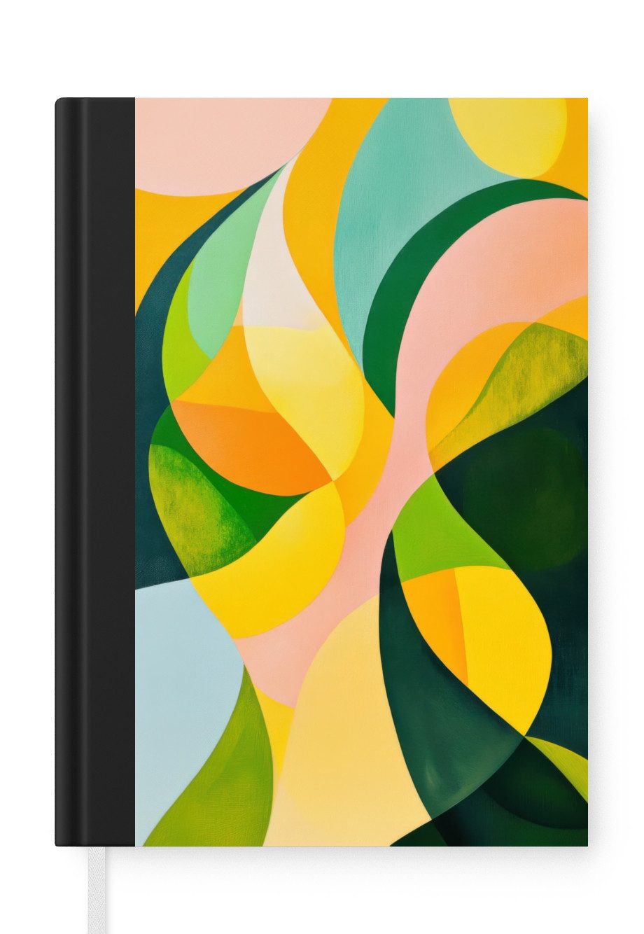 Das Notizbuch hat ein Hardcover und ist mit einer schwarzen Bindung versehen. Diese Bindung in Wildlederoptik verleiht ihm einen luxuriösen Look. Durch die schwarze Bindung hat das Notizbuch eine teilweise schwarze Rückseite. Dank seiner kompakten Размер lässt sich das Hardcover-Notizbuch leicht mitnehmen.