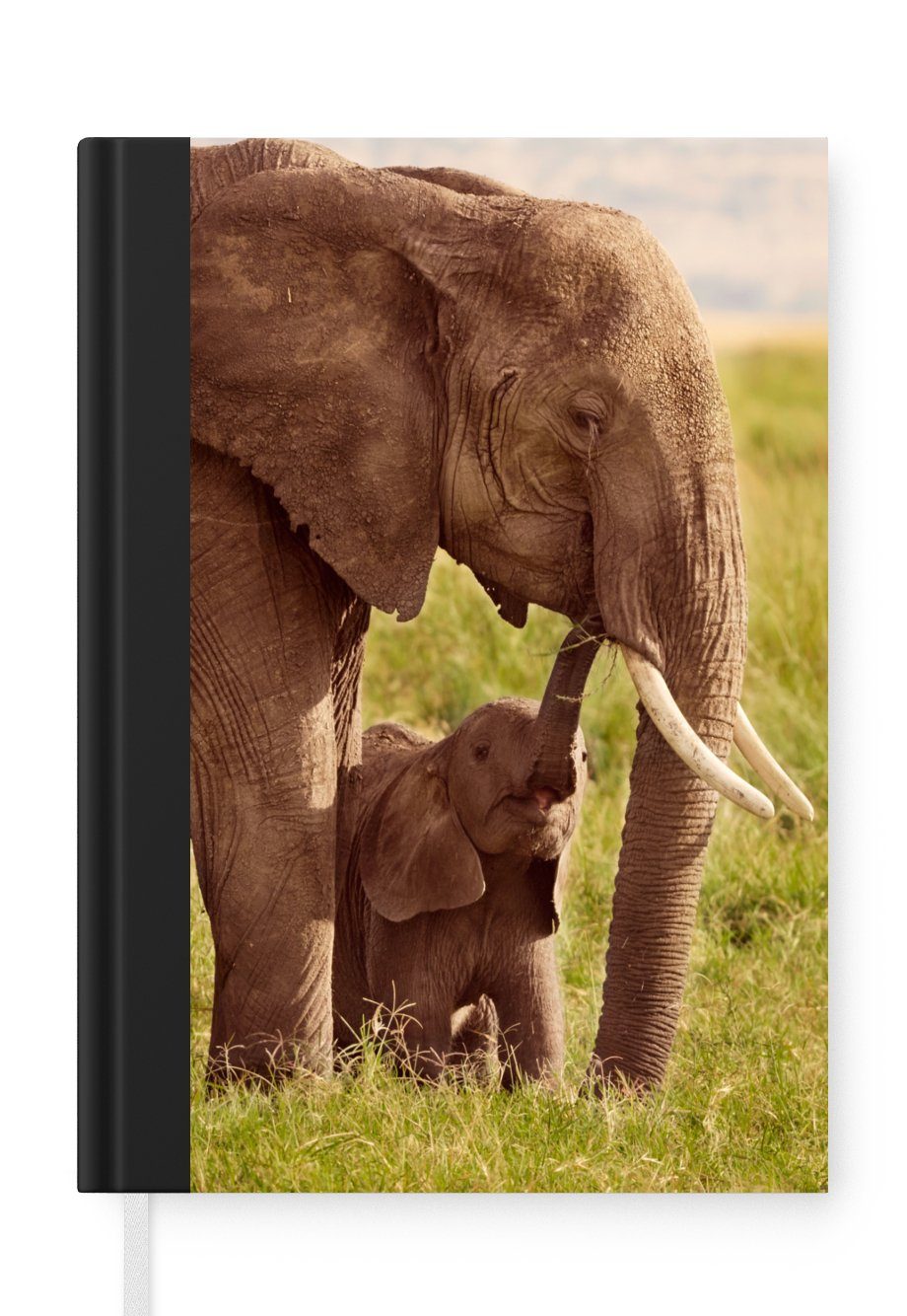 Das Notizbuch hat ein Hardcover und ist mit einer schwarzen Bindung versehen. Diese Bindung in Wildlederoptik verleiht ihm einen luxuriösen Look. Durch die schwarze Bindung hat das Notizbuch eine teilweise schwarze Rückseite. Dank seiner kompakten Размер lässt sich das Hardcover-Notizbuch leicht mitnehmen.