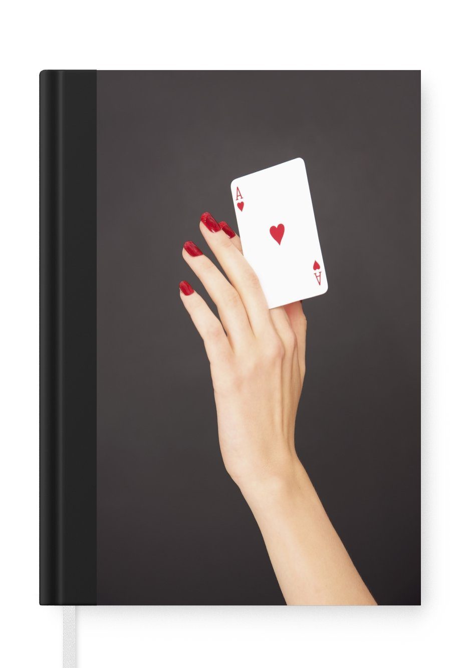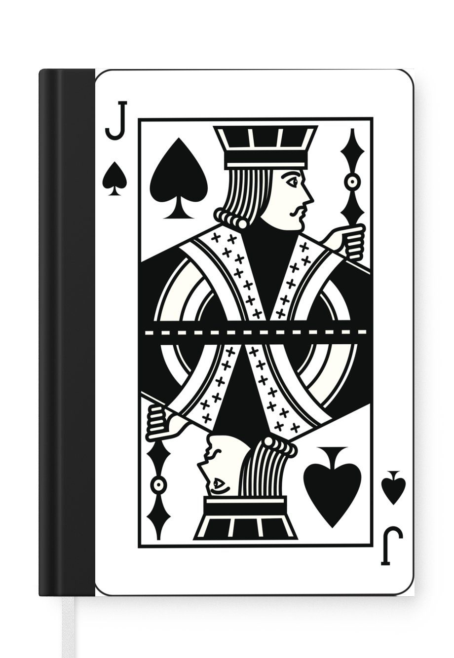 Das Notizbuch hat ein Hardcover und ist mit einer schwarzen Bindung versehen. Diese Bindung in Wildlederoptik verleiht ihm einen luxuriösen Look. Durch die schwarze Bindung hat das Notizbuch eine teilweise schwarze Rückseite. Dank seiner kompakten Размер lässt sich das Hardcover-Notizbuch leicht mitnehmen.