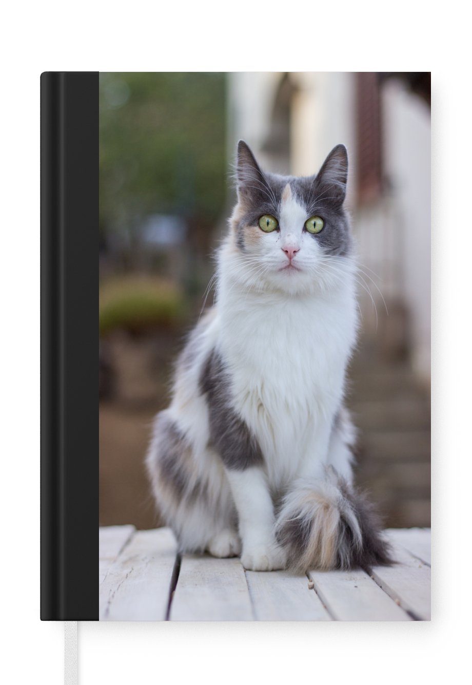 Das Notizbuch hat ein Hardcover und ist mit einer schwarzen Bindung versehen. Diese Bindung in Wildlederoptik verleiht ihm einen luxuriösen Look. Durch die schwarze Bindung hat das Notizbuch eine teilweise schwarze Rückseite. Dank seiner kompakten Размер lässt sich das Hardcover-Notizbuch leicht mitnehmen.