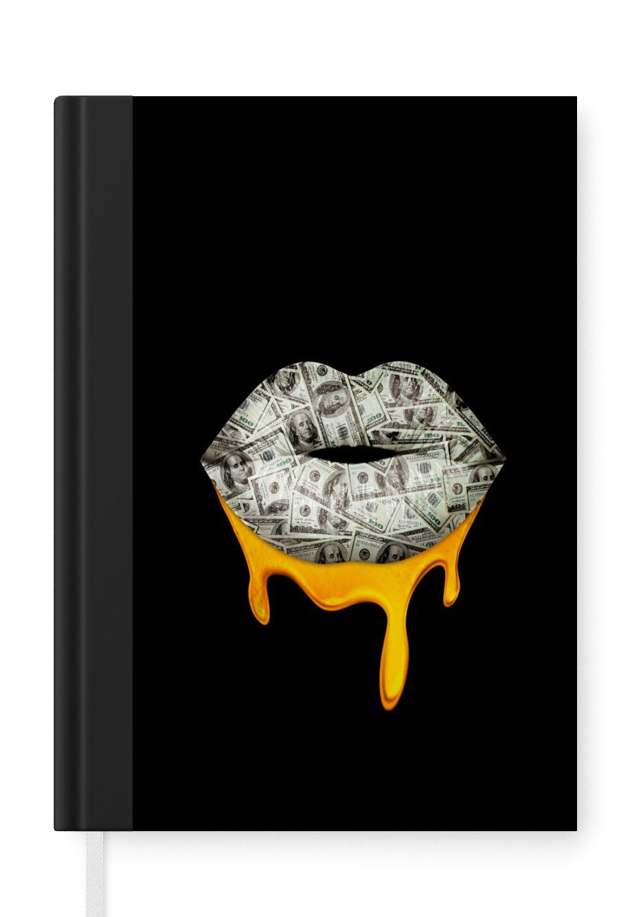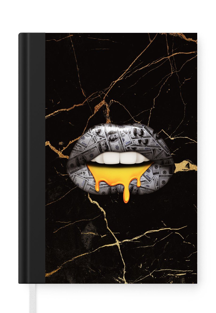 Das Notizbuch hat ein Hardcover und ist mit einer schwarzen Bindung versehen. Diese Bindung in Wildlederoptik verleiht ihm einen luxuriösen Look. Durch die schwarze Bindung hat das Notizbuch eine teilweise schwarze Rückseite. Dank seiner kompakten Размер lässt sich das Hardcover-Notizbuch leicht mitnehmen.