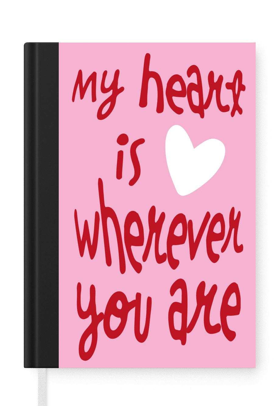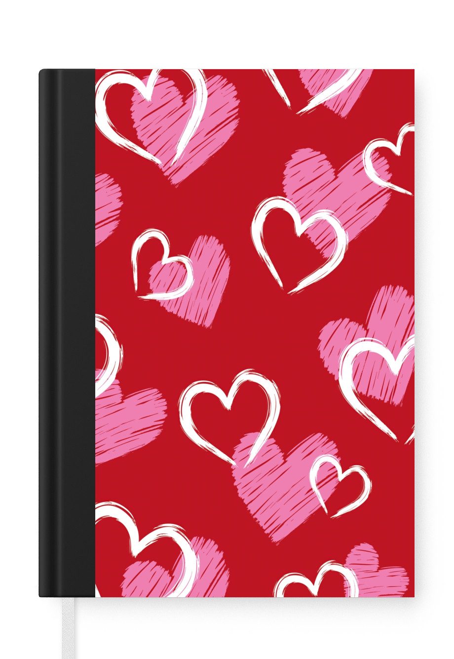 Das Notizbuch hat ein Hardcover und ist mit einer schwarzen Bindung versehen. Diese Bindung in Wildlederoptik verleiht ihm einen luxuriösen Look. Durch die schwarze Bindung hat das Notizbuch eine teilweise schwarze Rückseite. Dank seiner kompakten Размер lässt sich das Hardcover-Notizbuch leicht mitnehmen.