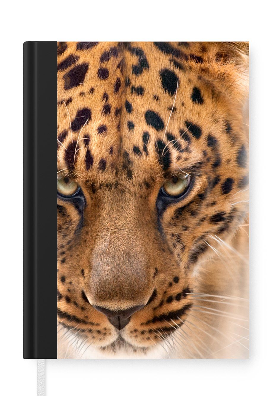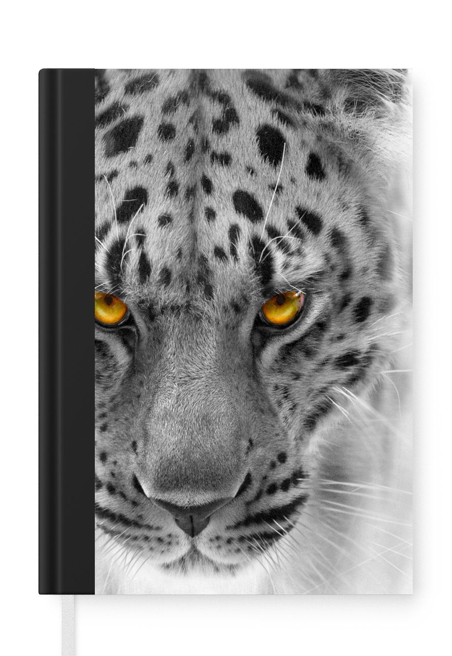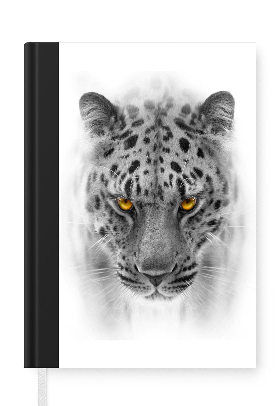 Nahaufnahme eines schwarz-weißen Leoparden mit gelben Augen.Anzahl Seiten | 99 Seiten |