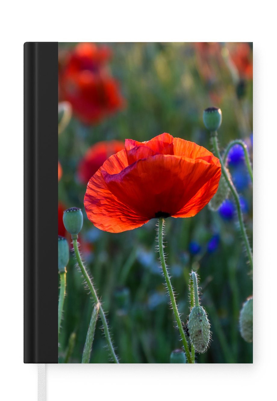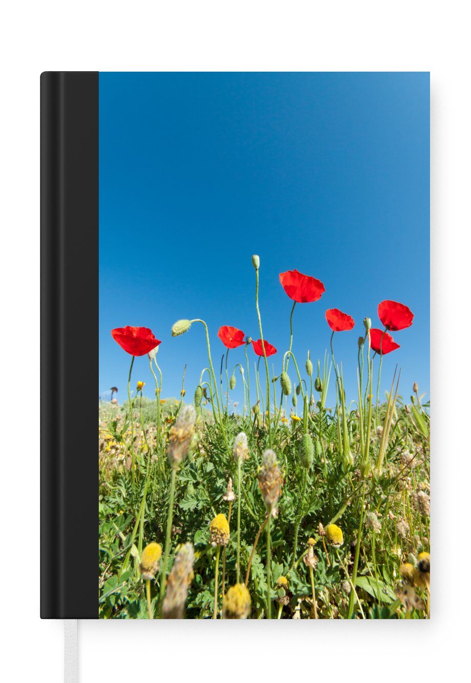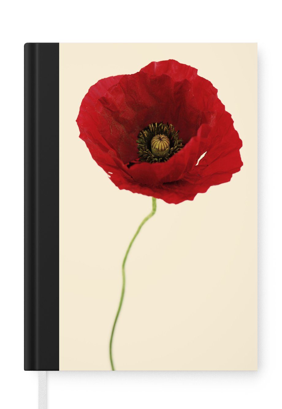 Detailliertes Bild einer leuchtend roten Mohnblume mit grünem Stiel, vor einem gelben Hintergrund. Papaveraceae (Mohngewächse).Anzahl Seiten | 99 Seiten |