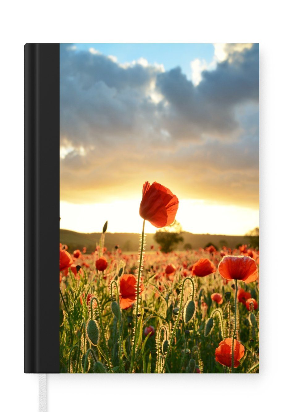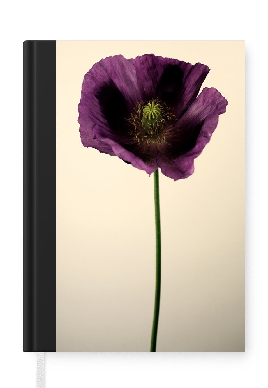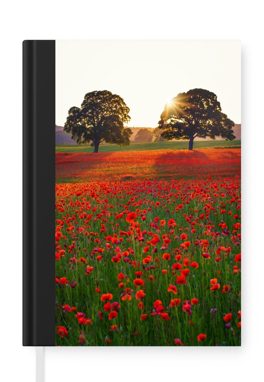 Das Notizbuch hat ein Hardcover und ist mit einer schwarzen Bindung versehen. Diese Bindung in Wildlederoptik verleiht ihm einen luxuriösen Look. Durch die schwarze Bindung hat das Notizbuch eine teilweise schwarze Rückseite. Dank seiner kompakten Размер lässt sich das Hardcover-Notizbuch leicht mitnehmen.
