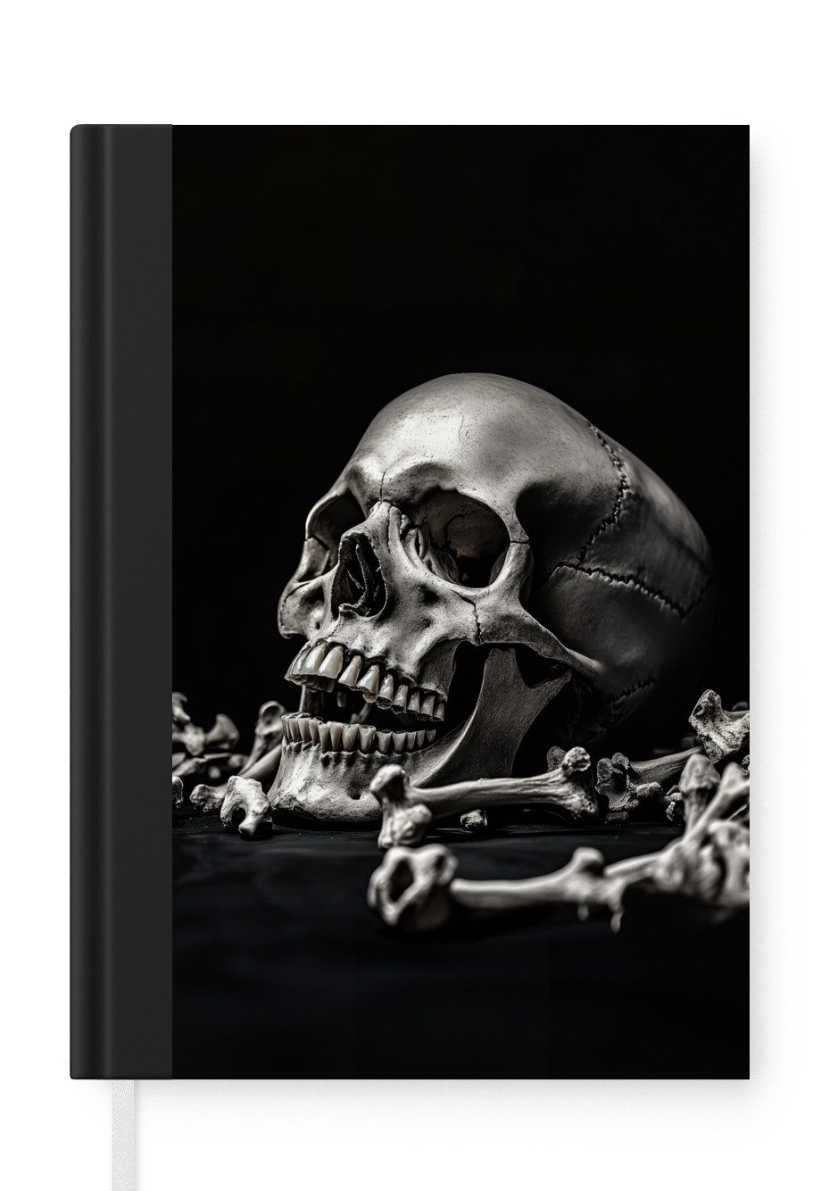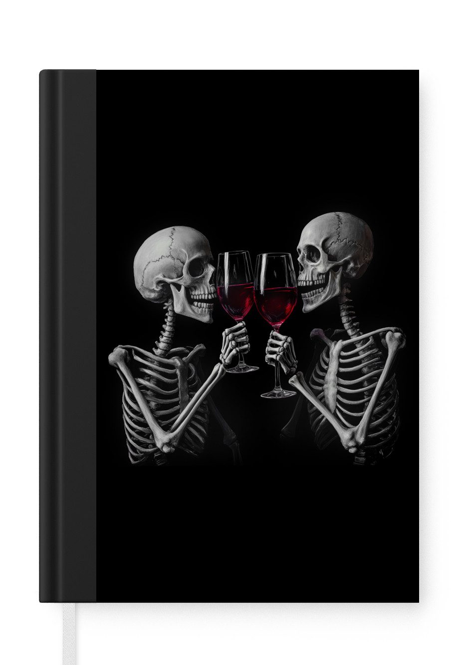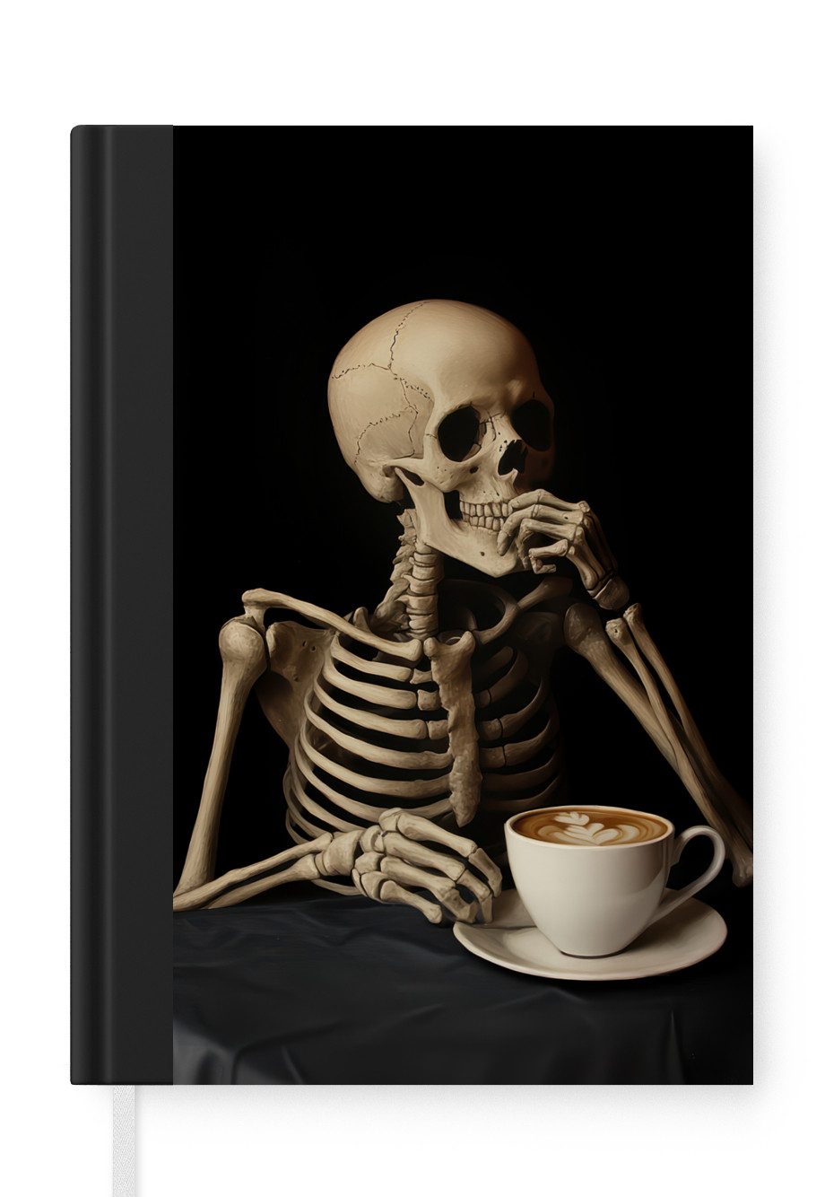 Skelett trinkt Kaffee an einem Tisch mit schwarzem Tischtuch auf schwarzem HintergrundAnzahl Seiten | 99 Seiten |