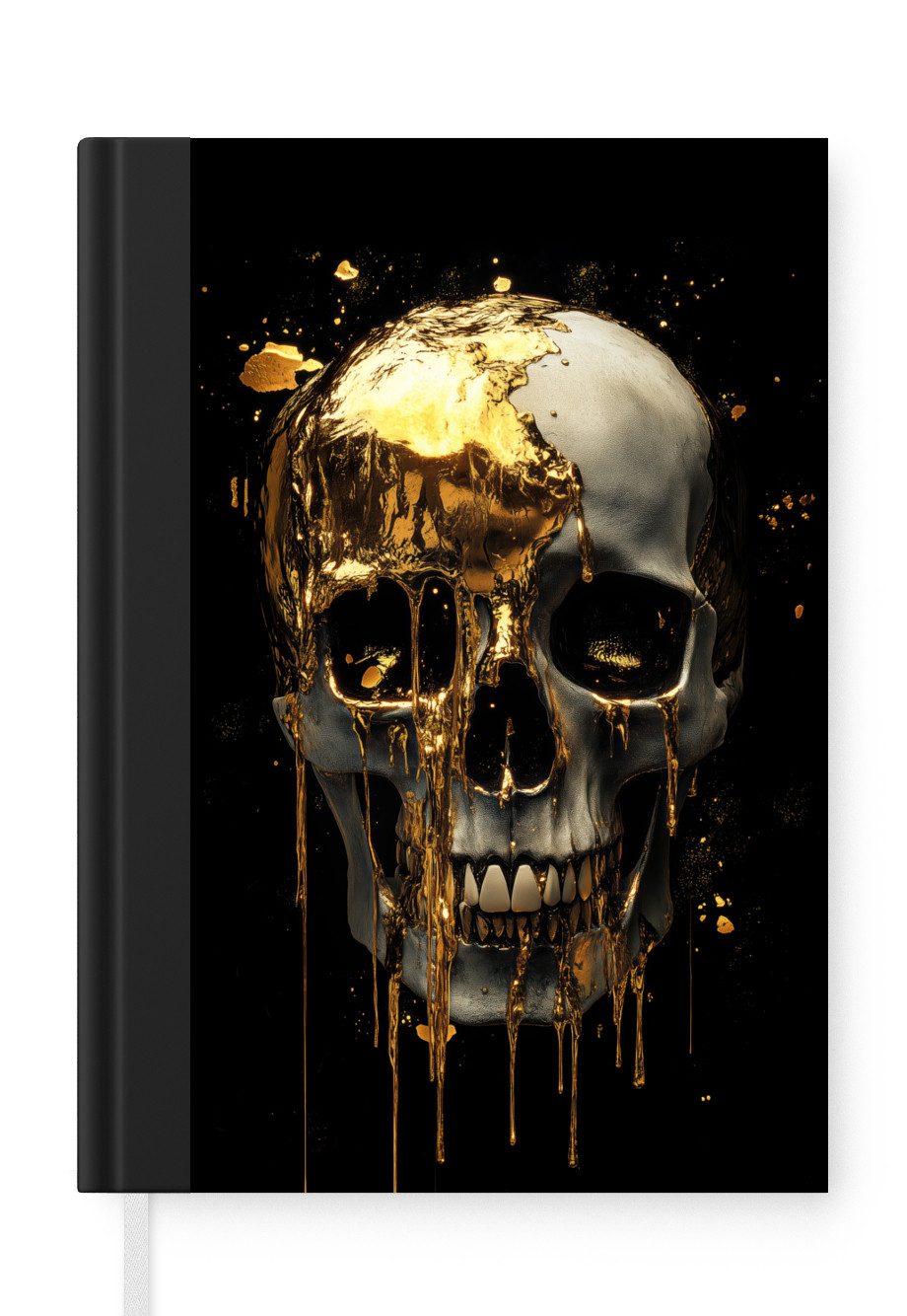 Das Notizbuch hat ein Hardcover und ist mit einer schwarzen Bindung versehen. Diese Bindung in Wildlederoptik verleiht ihm einen luxuriösen Look. Durch die schwarze Bindung hat das Notizbuch eine teilweise schwarze Rückseite. Dank seiner kompakten Размер lässt sich das Hardcover-Notizbuch leicht mitnehmen.