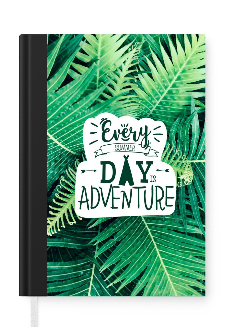 Das Sommerzitat "Jeder Sommertag ist ein Abenteuer" auf einem Hintergrund aus Pflanzen.Anzahl Seiten | 99 Seiten |