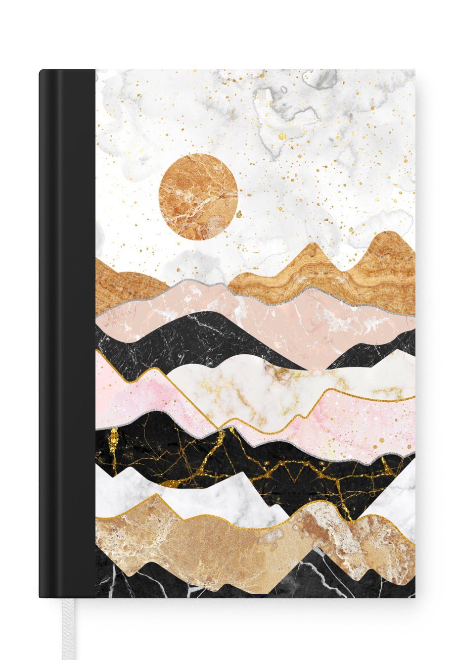 Das Notizbuch hat ein Hardcover und ist mit einer schwarzen Bindung versehen. Diese Bindung in Wildlederoptik verleiht ihm einen luxuriösen Look. Durch die schwarze Bindung hat das Notizbuch eine teilweise schwarze Rückseite. Dank seiner kompakten Размер lässt sich das Hardcover-Notizbuch leicht mitnehmen.