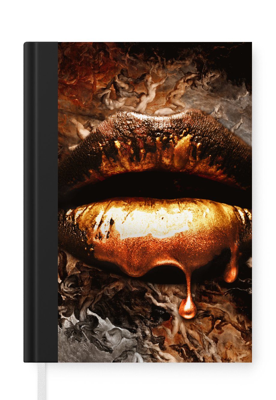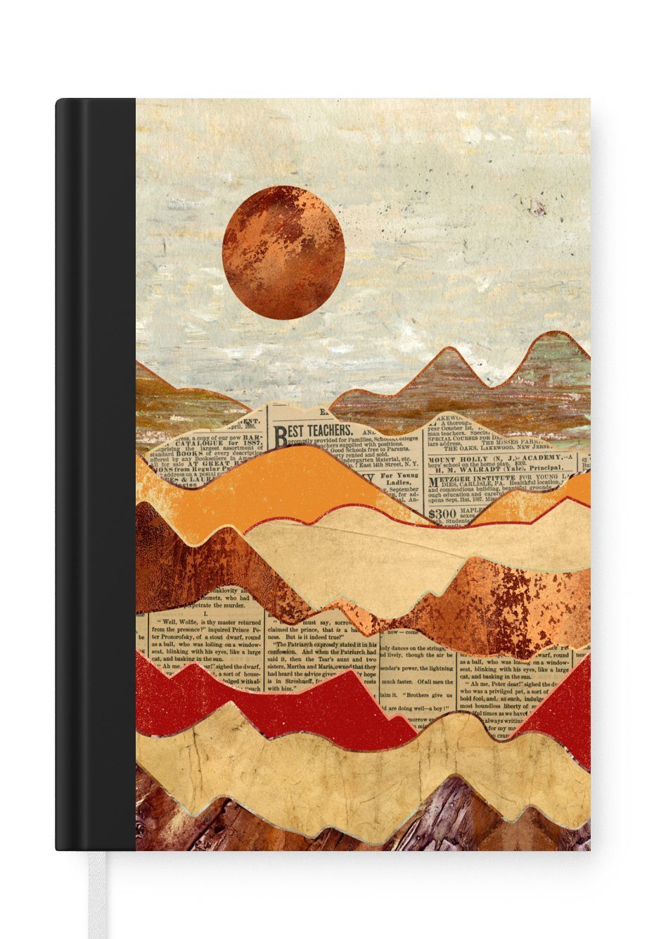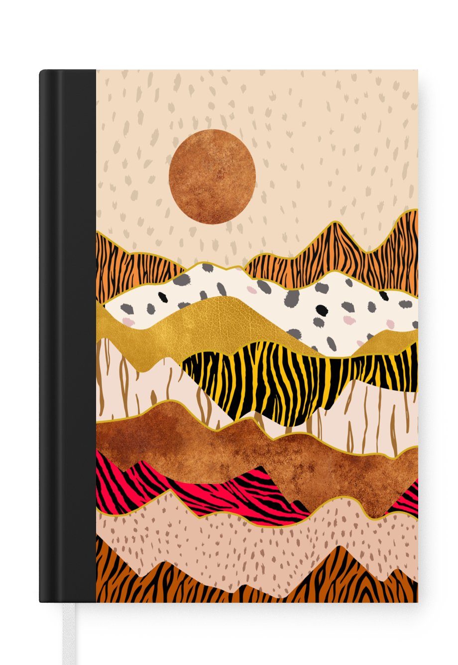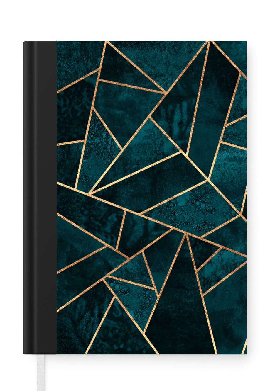 Das Notizbuch hat ein Hardcover und ist mit einer schwarzen Bindung versehen. Diese Bindung in Wildlederoptik verleiht ihm einen luxuriösen Look. Durch die schwarze Bindung hat das Notizbuch eine teilweise schwarze Rückseite. Dank seiner kompakten Размер lässt sich das Hardcover-Notizbuch leicht mitnehmen.