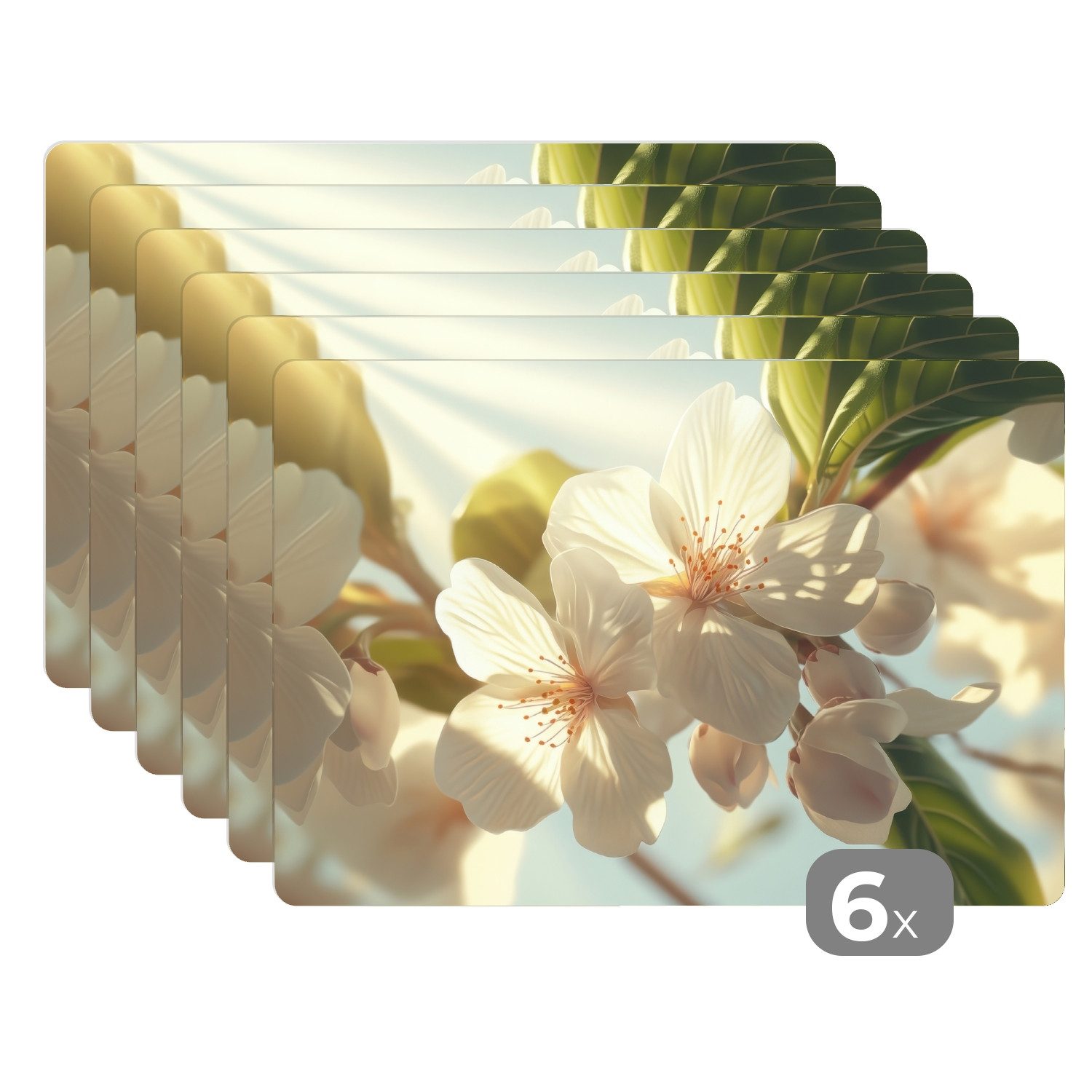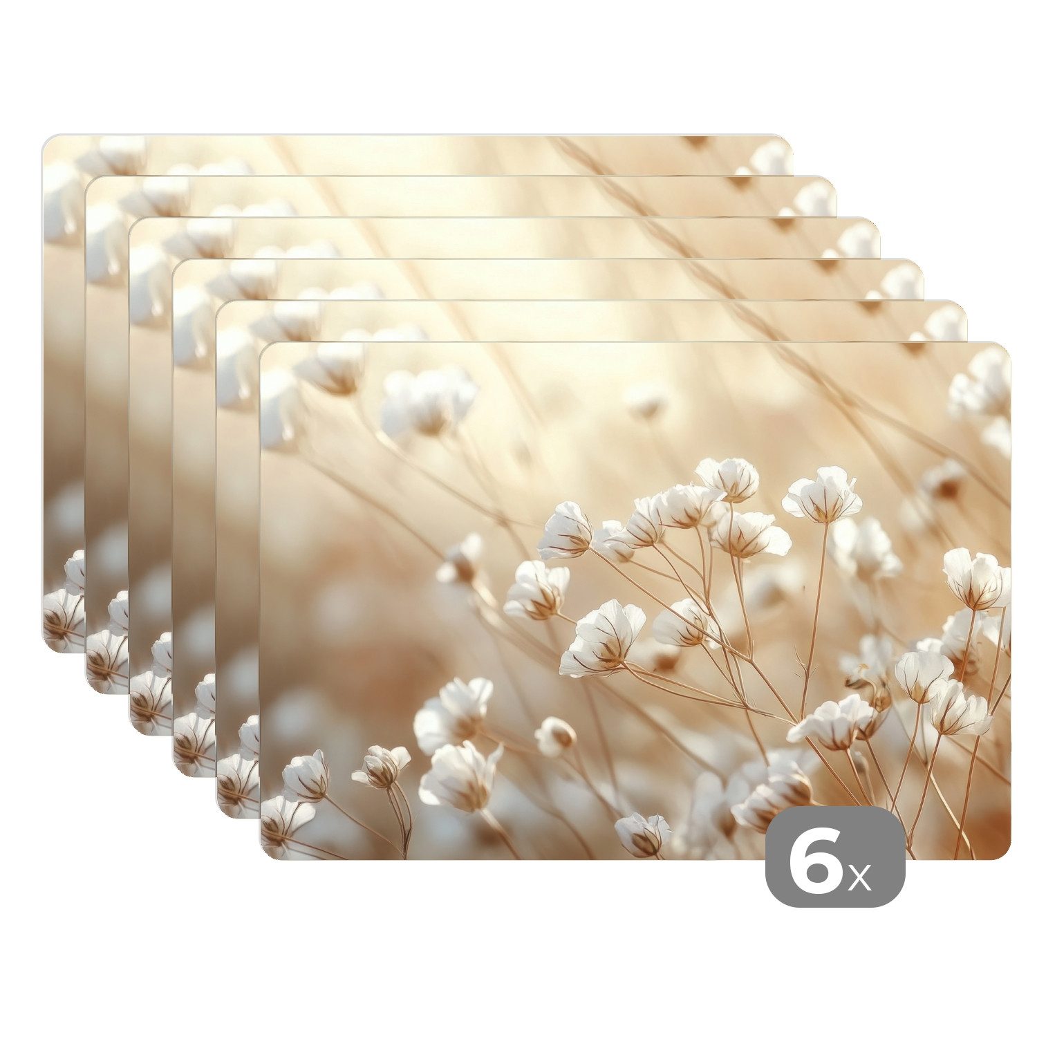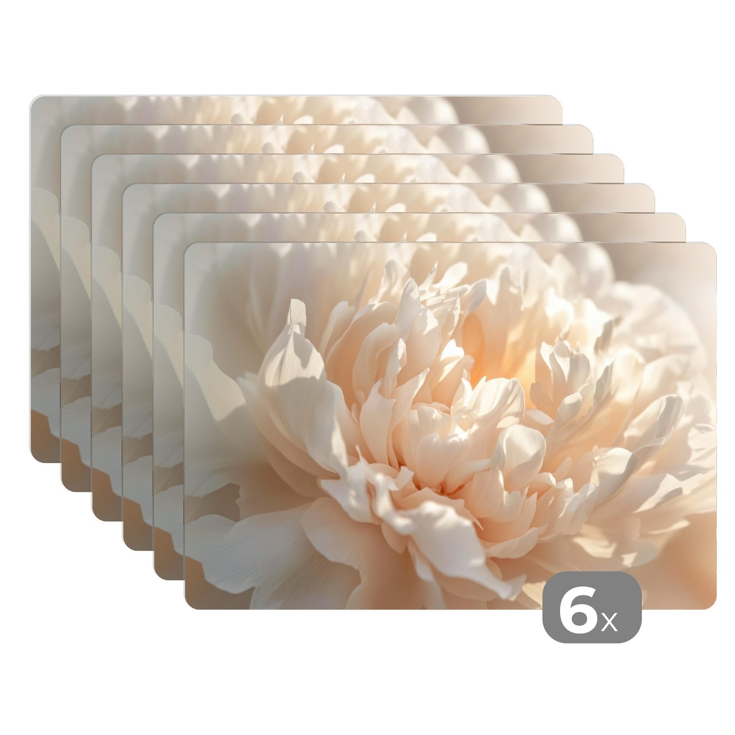 Die Tischsets von MuchoWow verhindern auf stilvolle Art und Weise das Verschütten von Speisen auf dem Tisch. Das Tischset ist aus hochwertigem Vinyl gefertigt. Das Tischset ist leicht zu reinigen. Mit einem feuchten Tuch ist das Tischset bereit für die nächste Mahlzeit oder Bastelparty. Die Unterseite des Tischsets ist mit hitzebeständigem Vinyl versehen, so dass Sie Teller mit heißen Speisen sicher auf Ihrem Tischset abstellen können. Dieses Set besteht aus 6 Tischsets