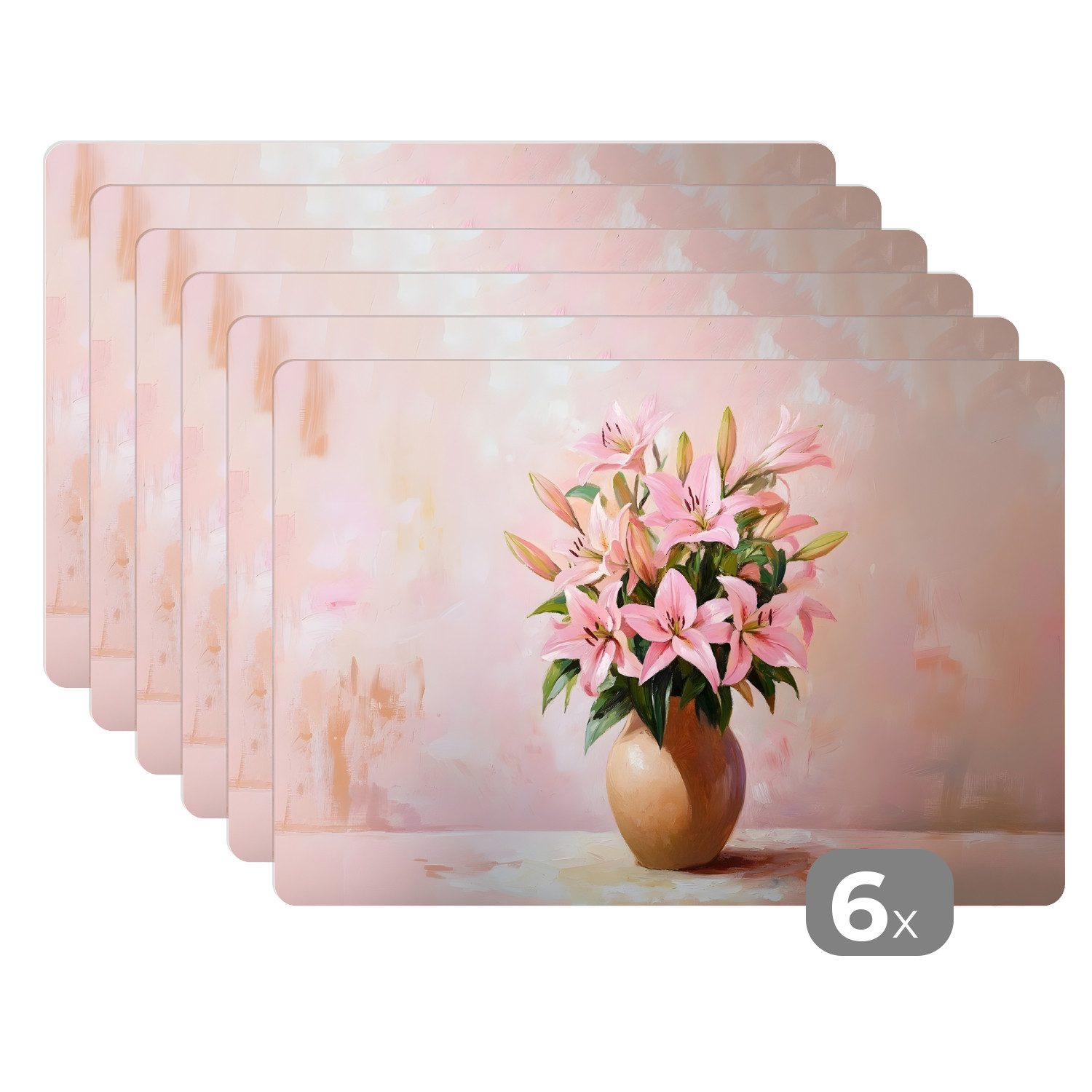 Die Tischsets von MuchoWow verhindern auf stilvolle Art und Weise das Verschütten von Speisen auf dem Tisch. Das Tischset ist aus hochwertigem Vinyl gefertigt. Das Tischset ist leicht zu reinigen. Mit einem feuchten Tuch ist das Tischset bereit für die nächste Mahlzeit oder Bastelparty. Die Unterseite des Tischsets ist mit hitzebeständigem Vinyl versehen, so dass Sie Teller mit heißen Speisen sicher auf Ihrem Tischset abstellen können. Dieses Set besteht aus 6 Tischsets