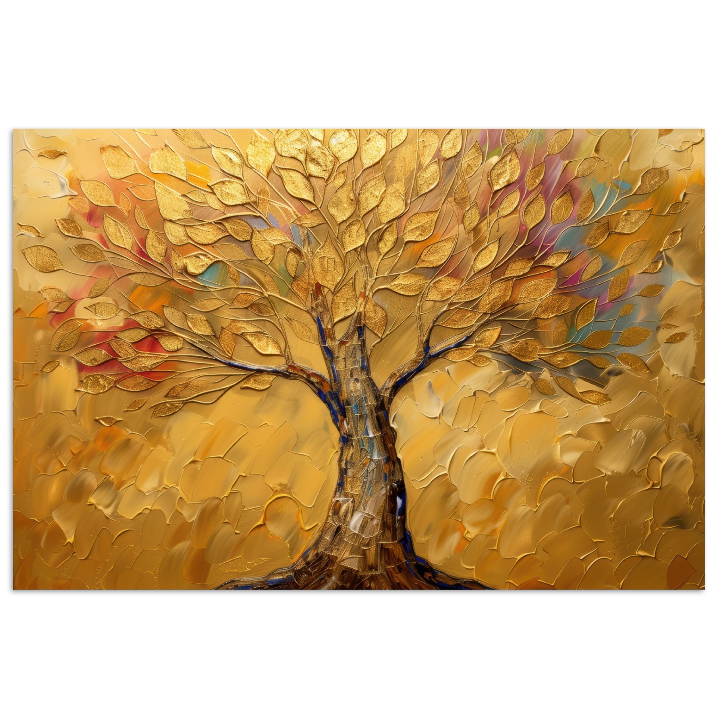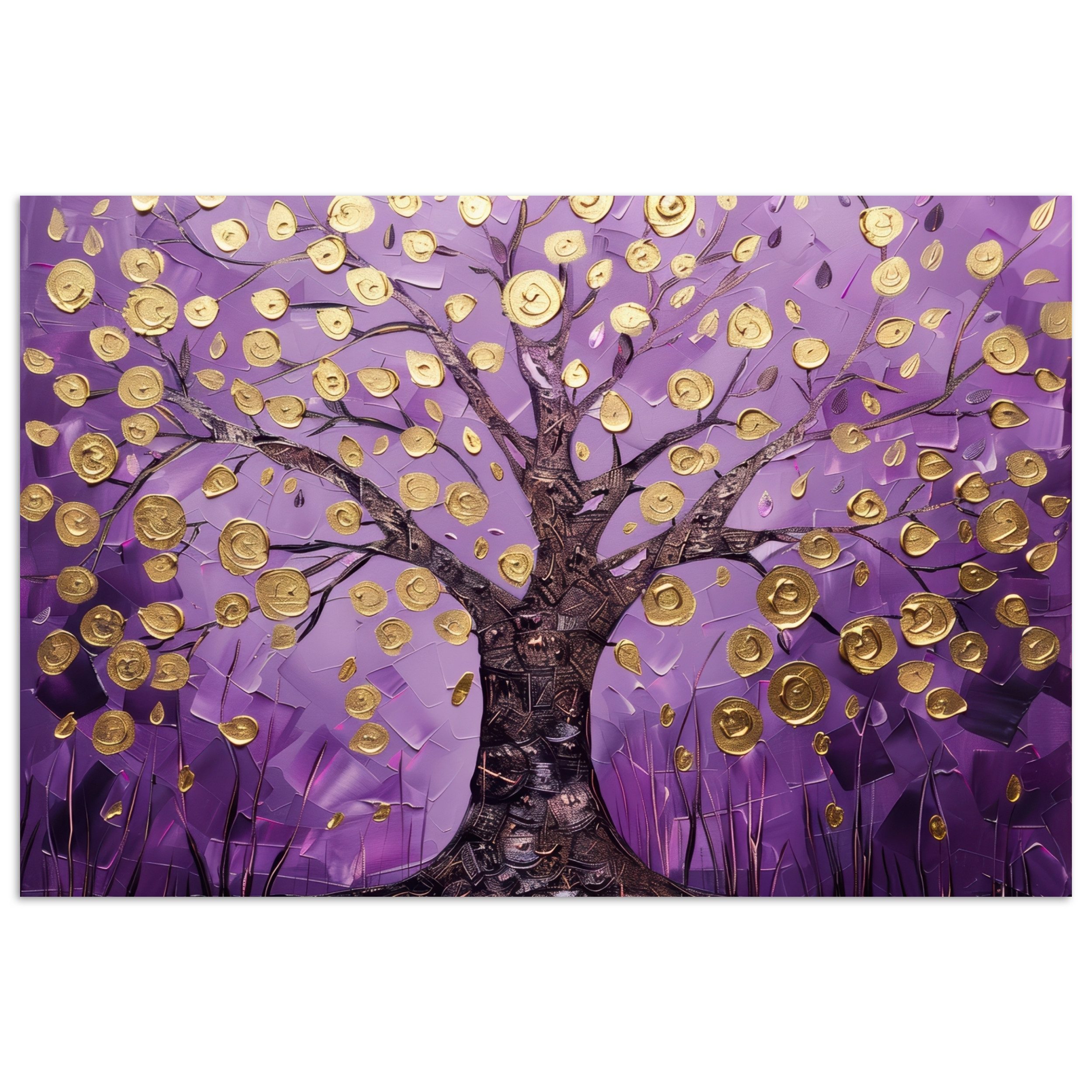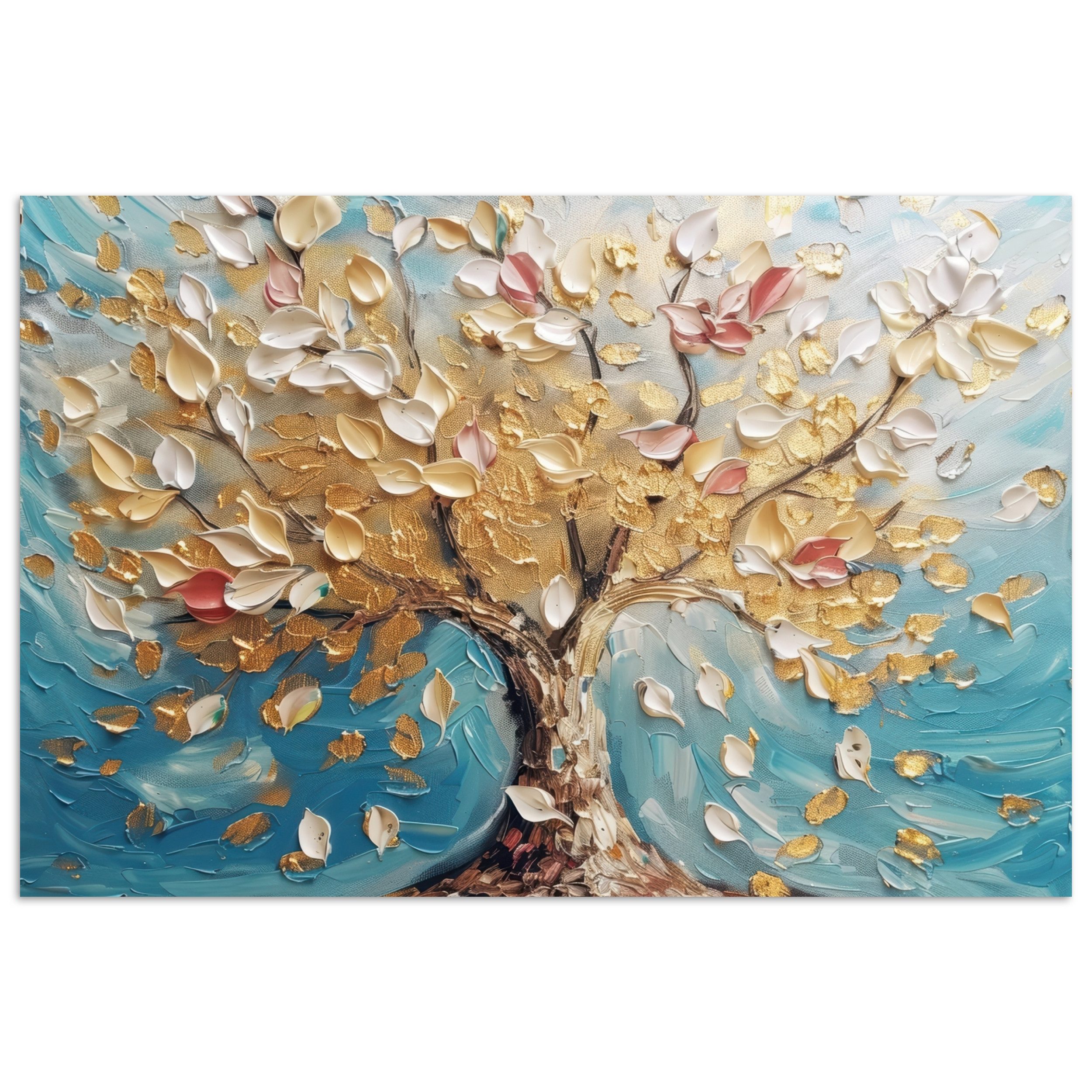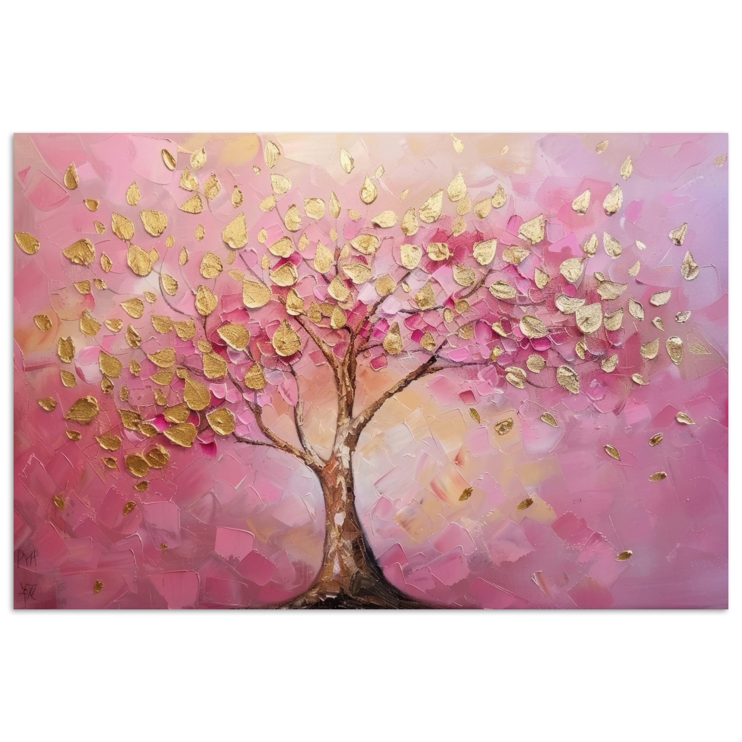 Ein moderner Baum in Lackoptik mit rosa Hintergrund und goldenen Details.