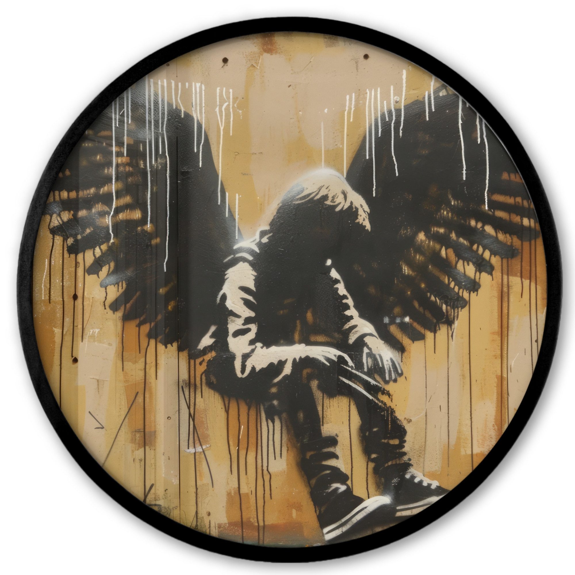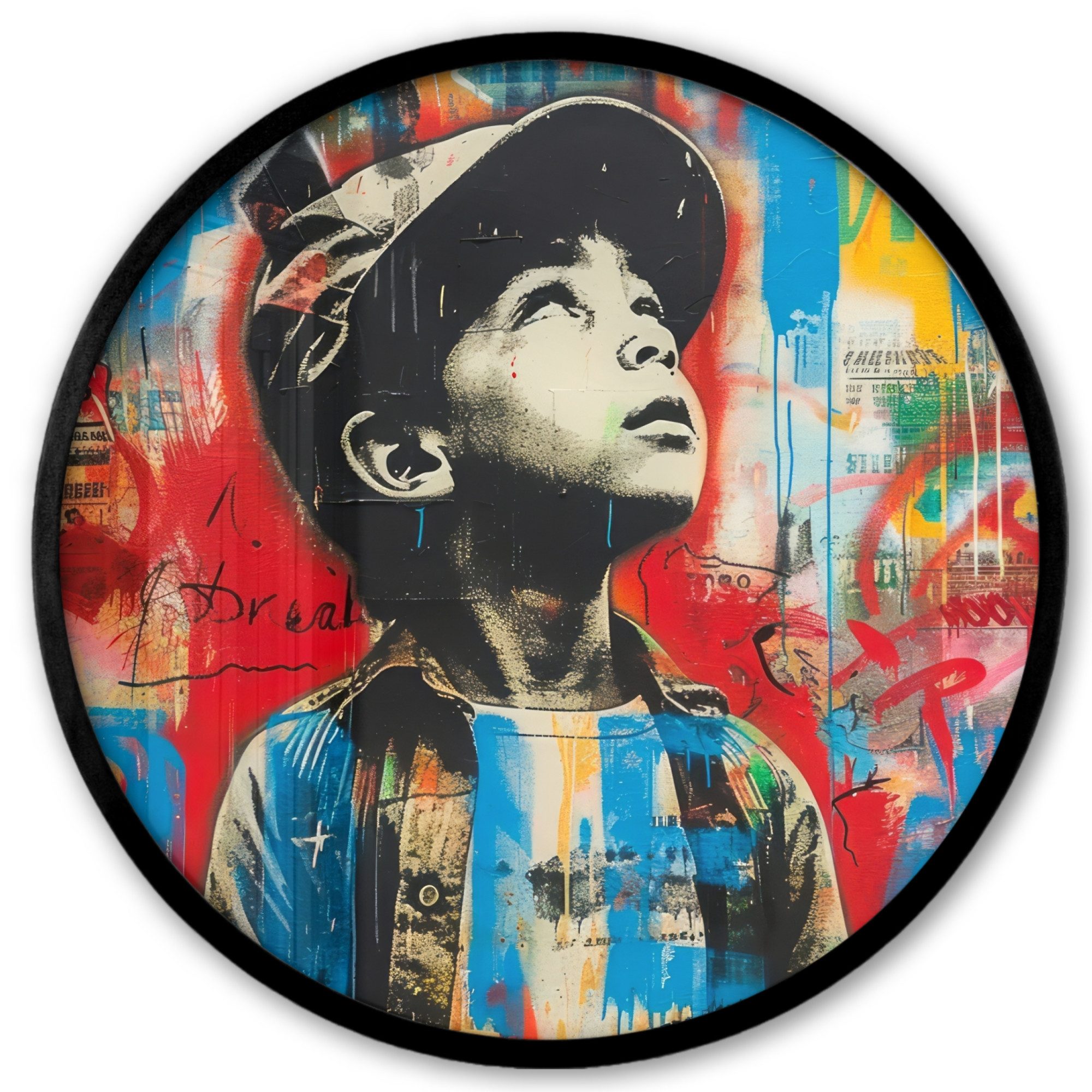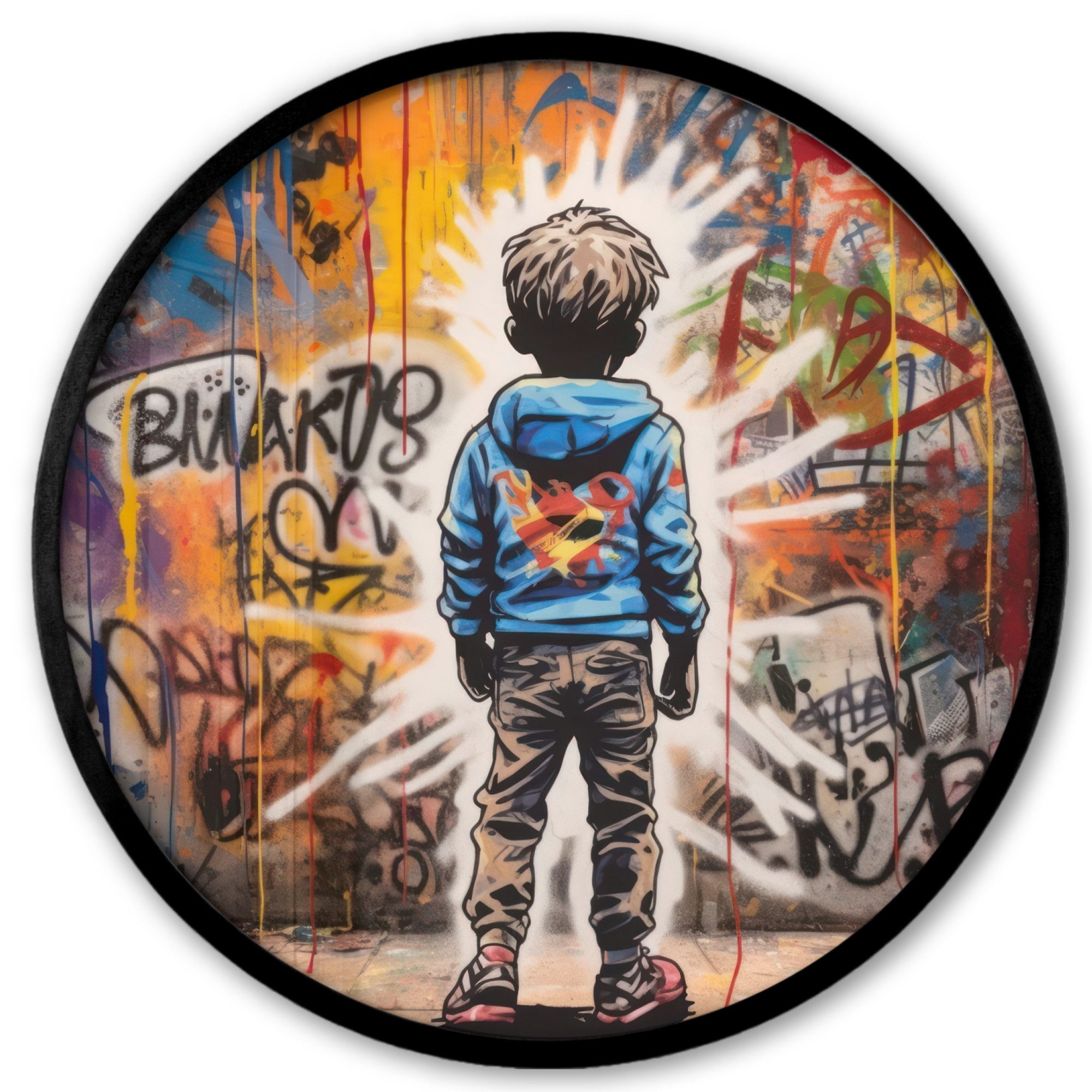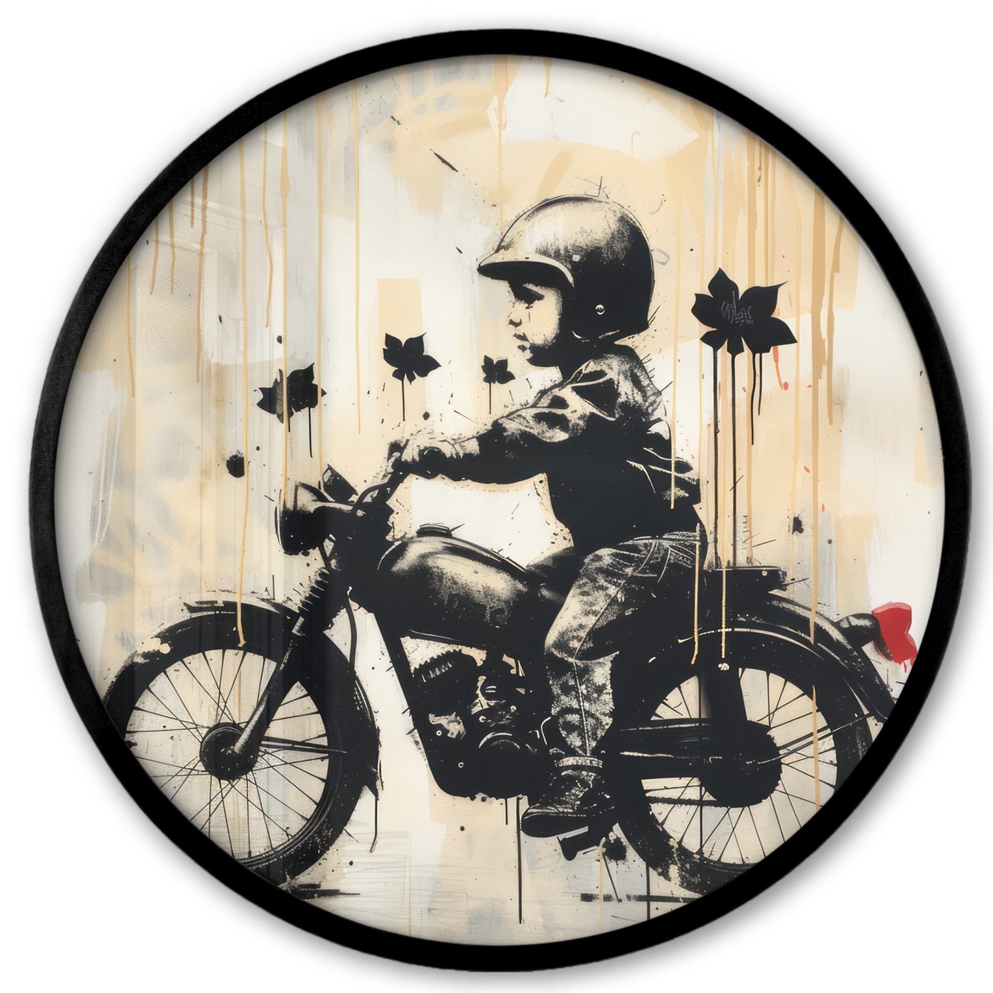 Druck eines Graffiti-Kunstwerks mit einem Jungen auf einem Motorrad
