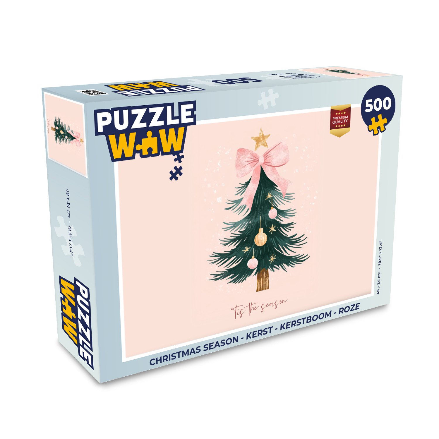 Das Zitat ''tis the season'' mit einem Weihnachtsbaum auf einem rosa HintergrundBreite | 34 cm |