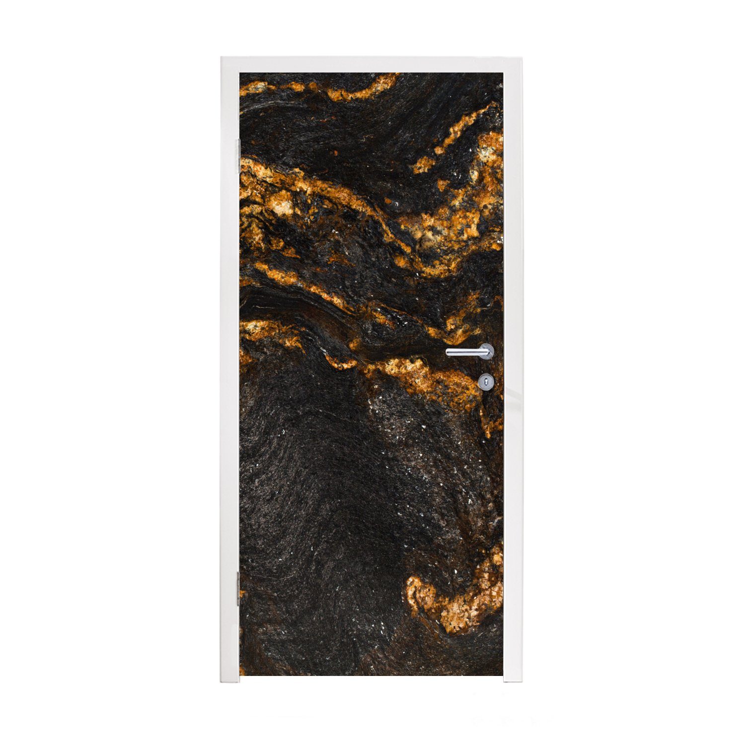 Verkalkter schwarzer Marmor mit Goldelementen.