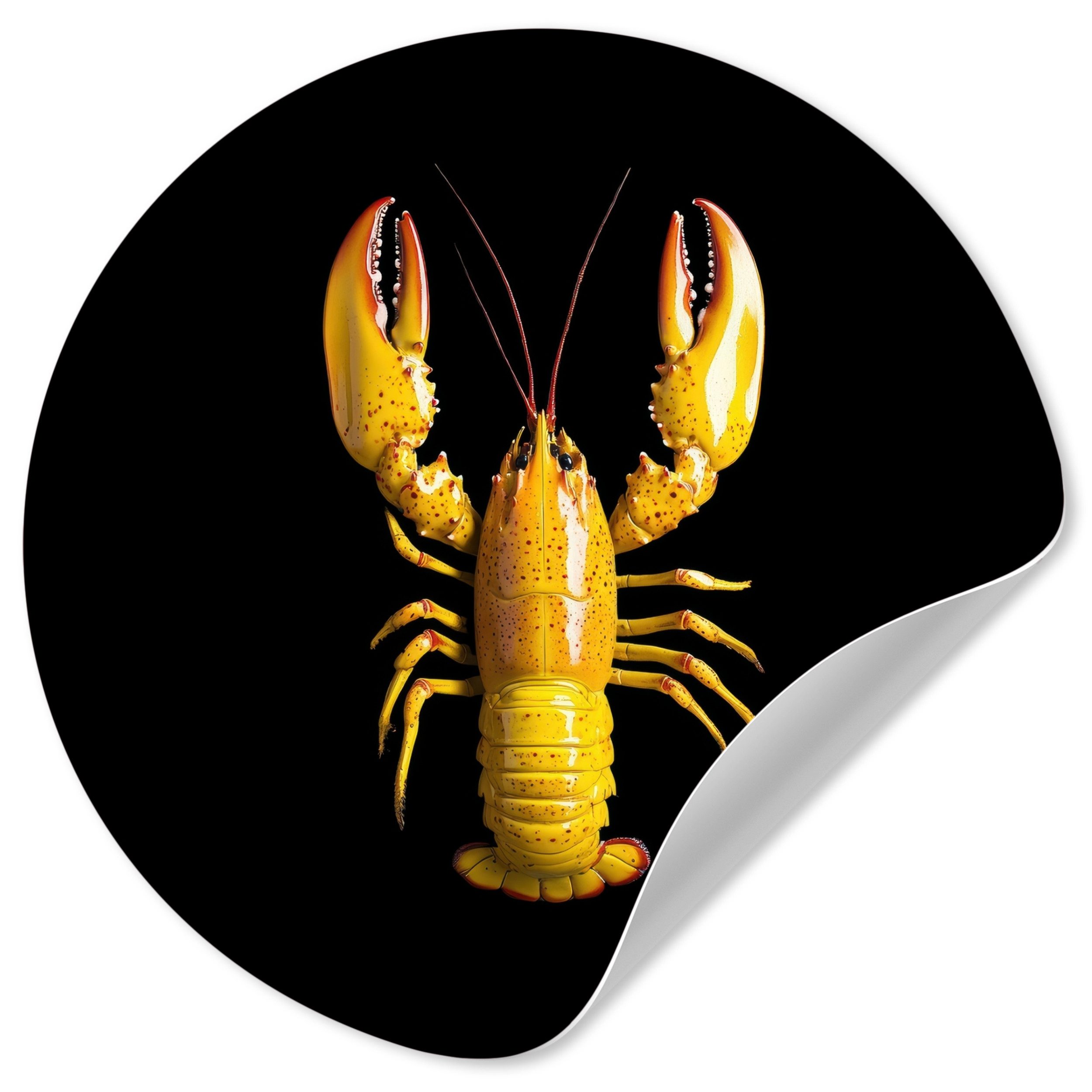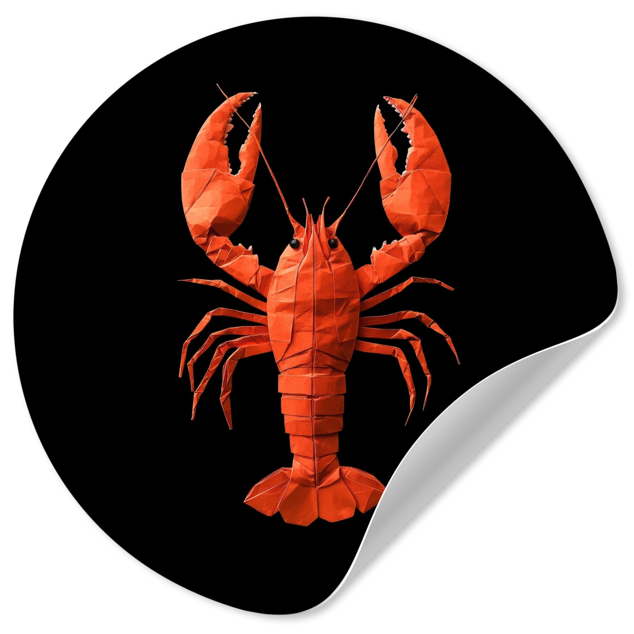 Ein kunstvoll gefalteter Hummer aus Papier mit orangefarbener Farbe, detailliert auf einem schlichten schwarzen Hintergrund. Die Falten und Linien bilden genaue Segmente und Beine.