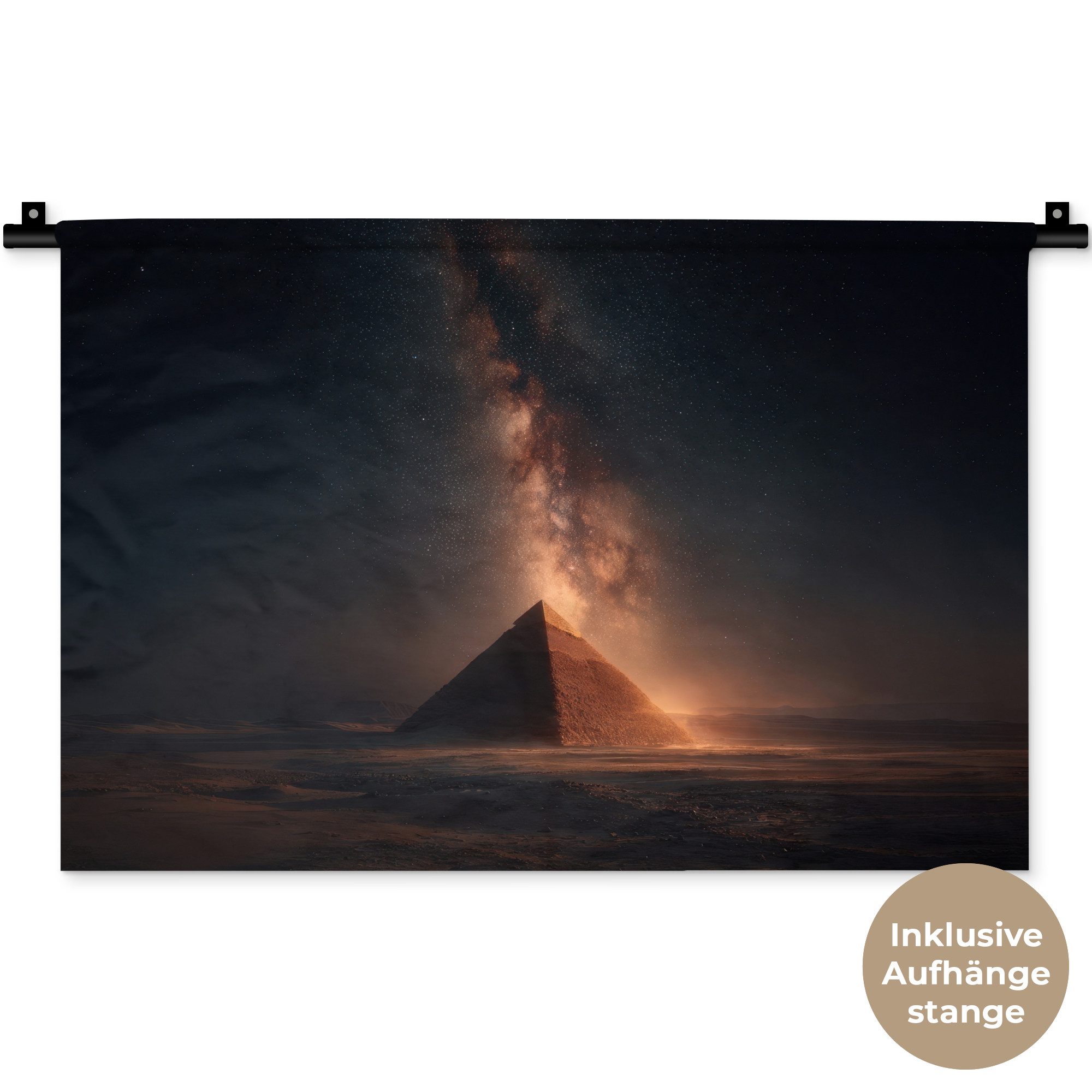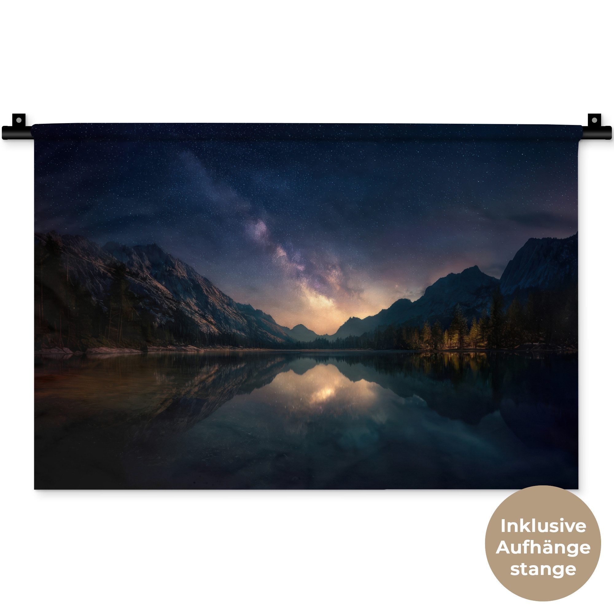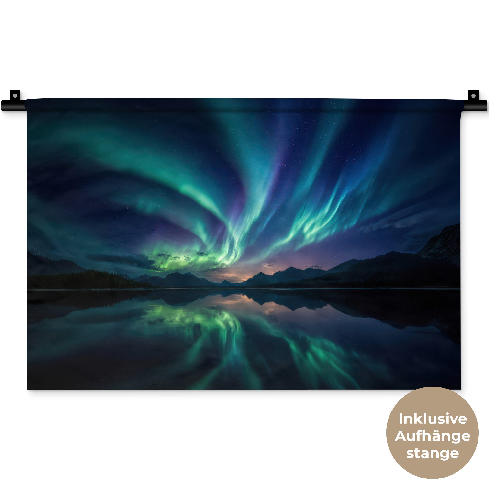 Der Wandteppich besteht aus robustem und strapazierfähigem Material. Er eignet sich hervorragend, um Ihrem Zuhause zusätzliche Atmosphäre und Wärme zu verleihen. Der Druck ist gestochen scharf mit leuchtenden Farben und sorgt für eine beeindruckende Wirkung. Die mitgelieferte Aufhängestange macht das Anbringen besonders einfach.
