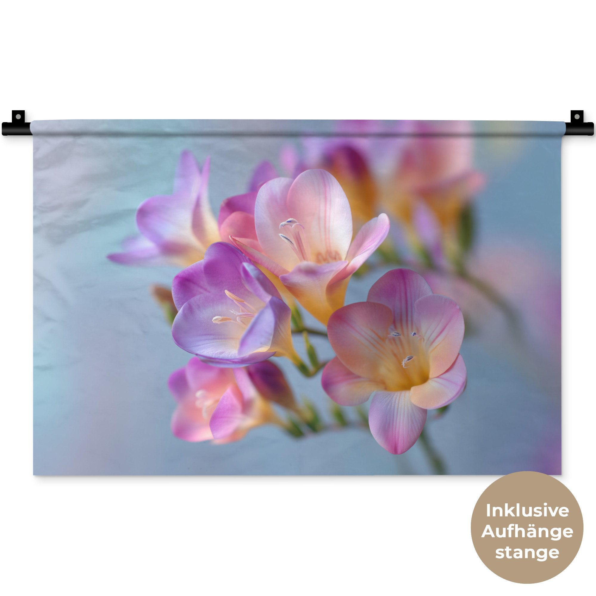 Der Wandteppich besteht aus robustem und strapazierfähigem Material. Er eignet sich hervorragend, um Ihrem Zuhause zusätzliche Atmosphäre und Wärme zu verleihen. Der Druck ist gestochen scharf mit leuchtenden Farben und sorgt für eine beeindruckende Wirkung. Die mitgelieferte Aufhängestange macht das Anbringen besonders einfach.