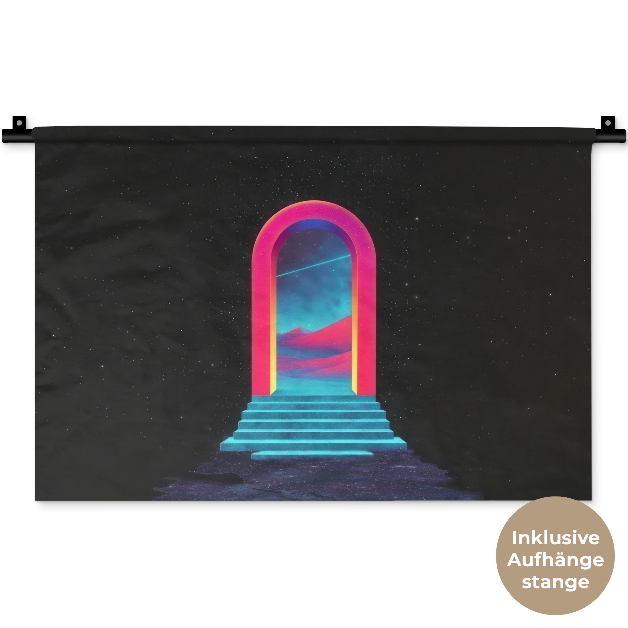 Der Wandteppich besteht aus robustem und strapazierfähigem Material. Er eignet sich hervorragend, um Ihrem Zuhause zusätzliche Atmosphäre und Wärme zu verleihen. Der Druck ist gestochen scharf mit leuchtenden Farben und sorgt für eine beeindruckende Wirkung. Die mitgelieferte Aufhängestange macht das Anbringen besonders einfach.