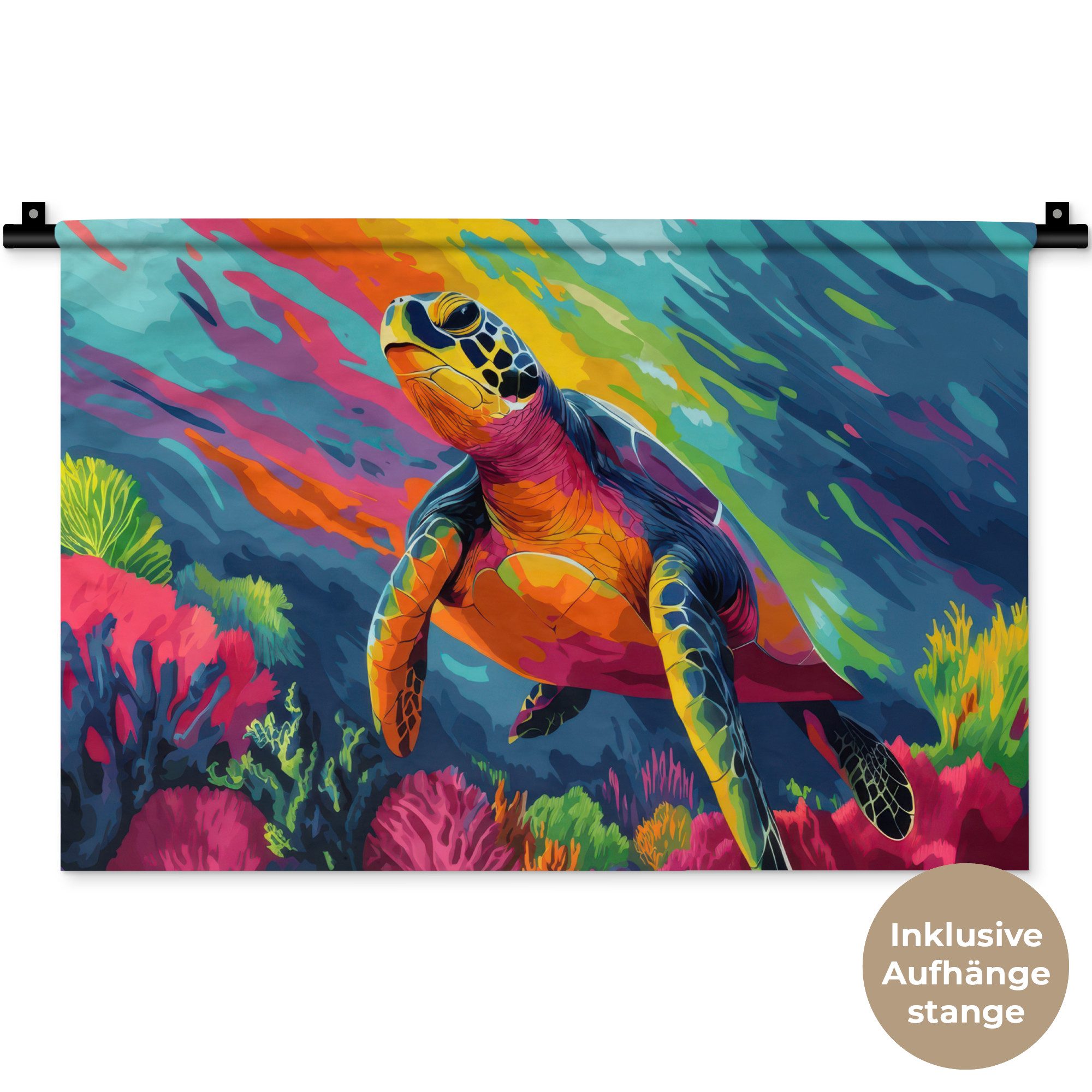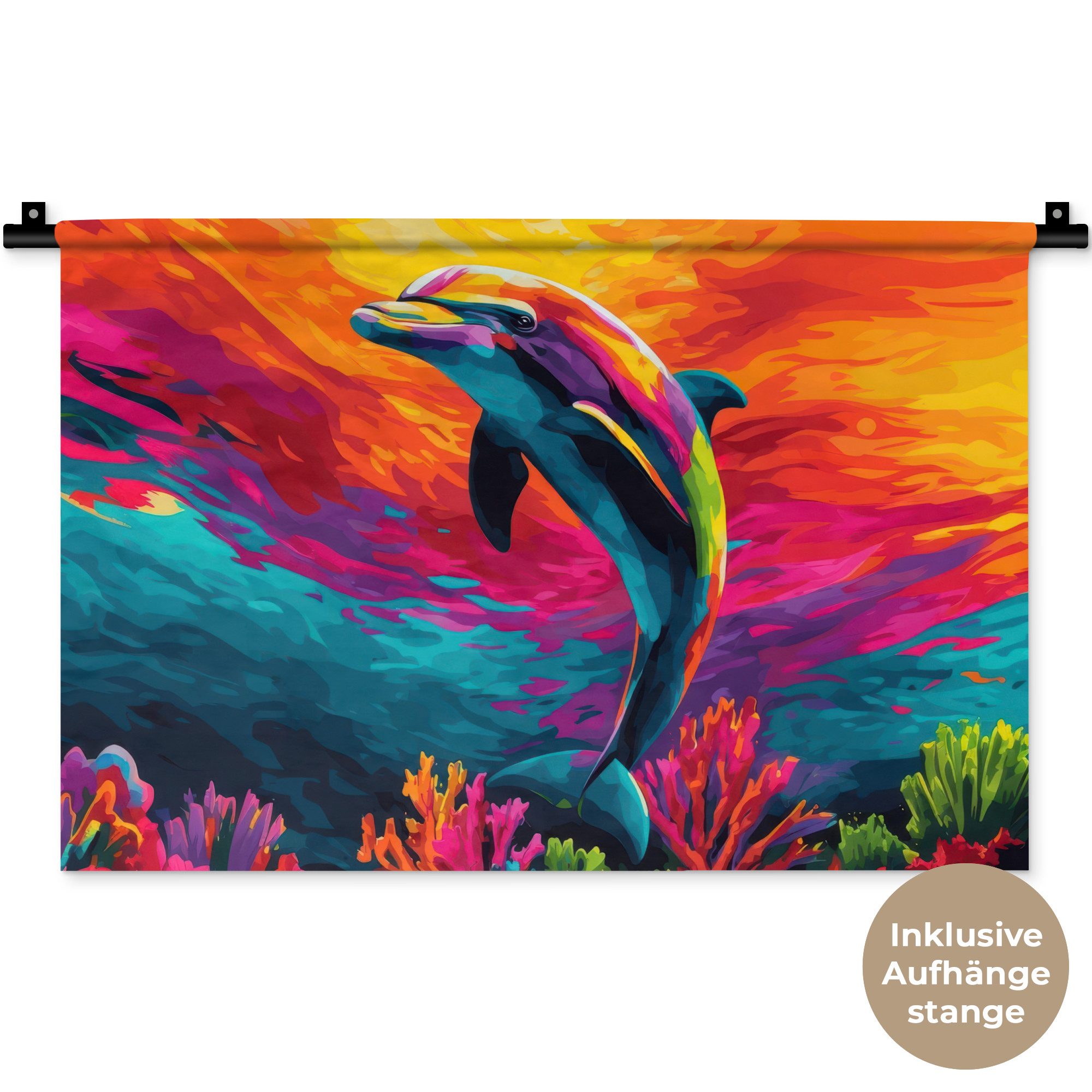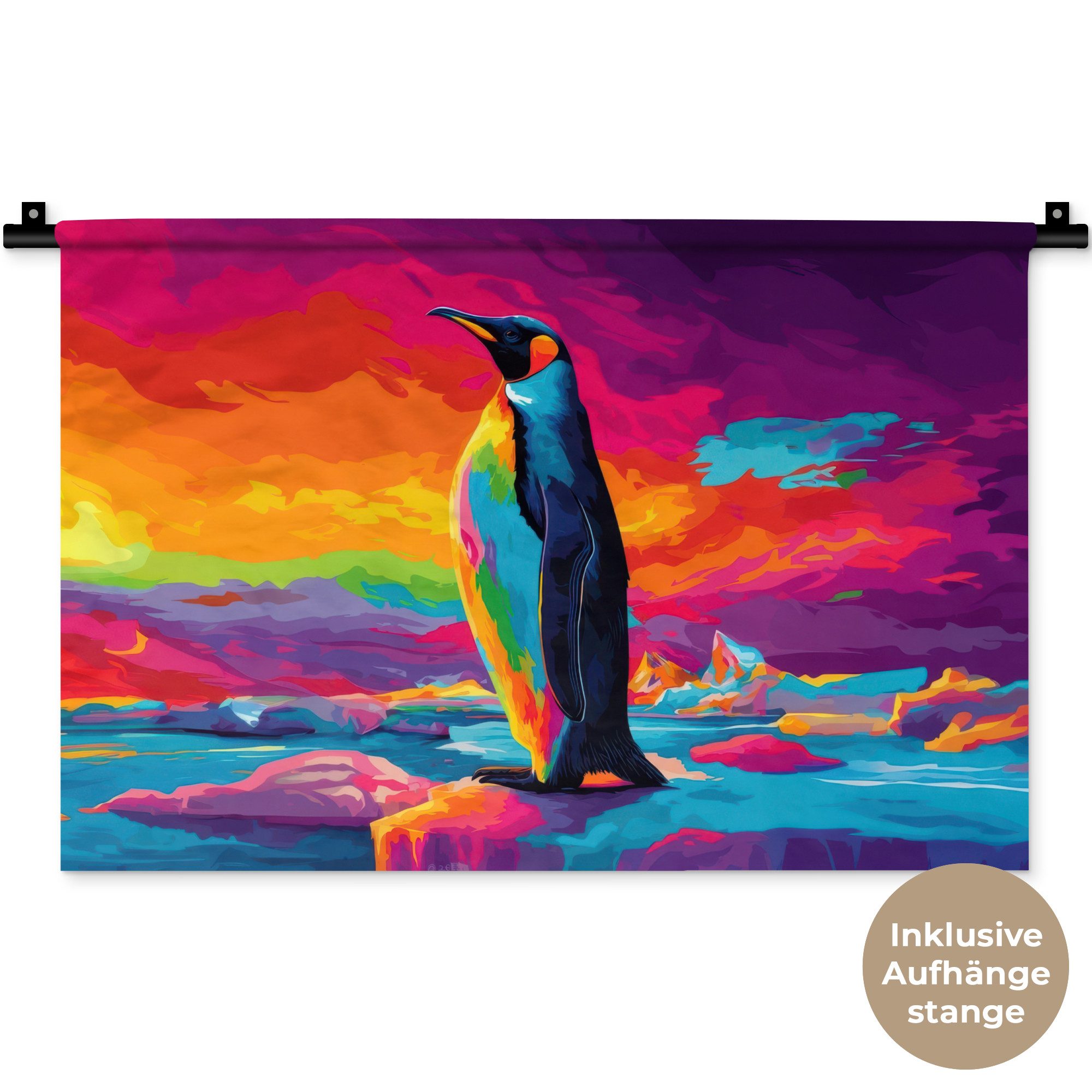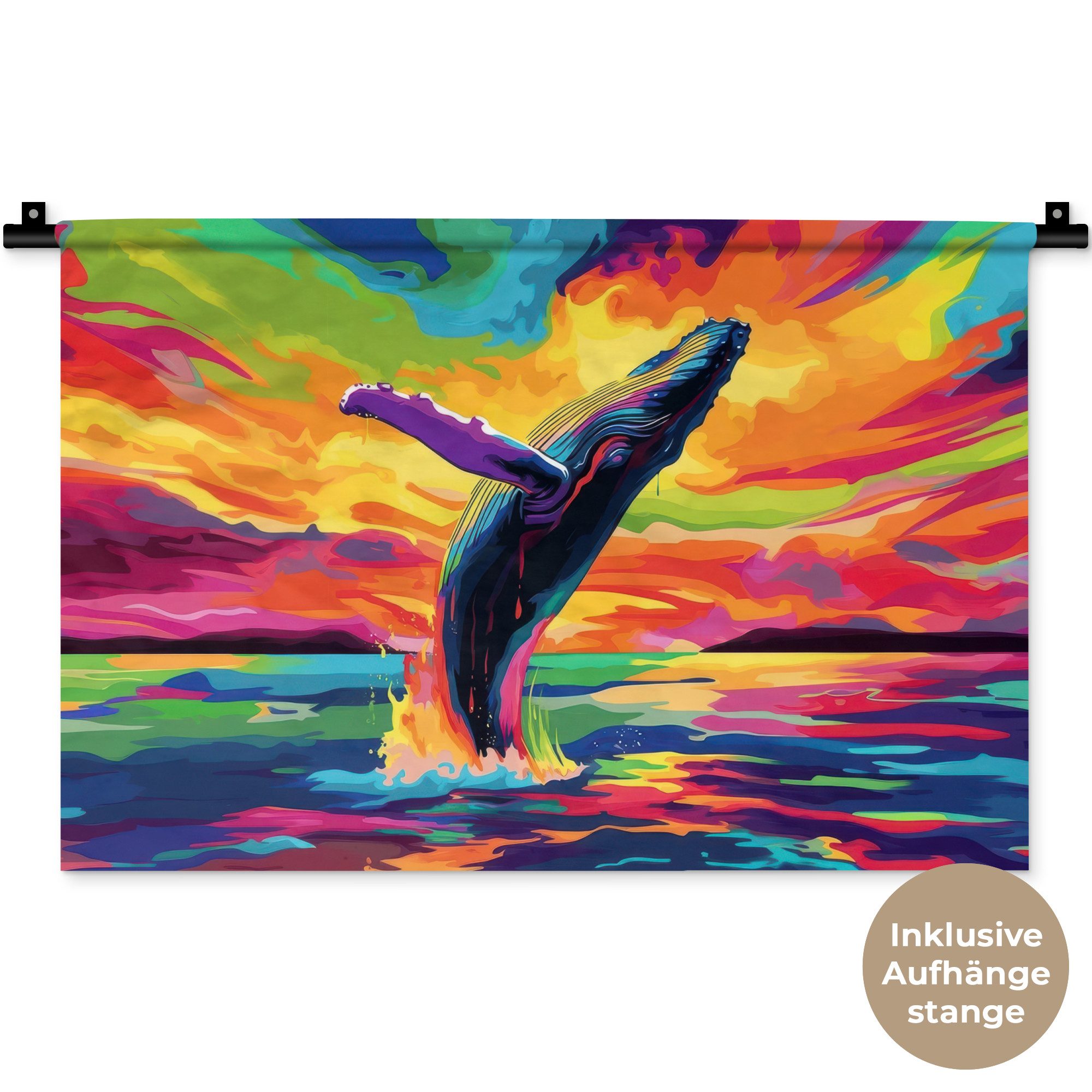 Der Wandteppich besteht aus robustem und strapazierfähigem Material. Er eignet sich hervorragend, um Ihrem Zuhause zusätzliche Atmosphäre und Wärme zu verleihen. Der Druck ist gestochen scharf mit leuchtenden Farben und sorgt für eine beeindruckende Wirkung. Die mitgelieferte Aufhängestange macht das Anbringen besonders einfach.
