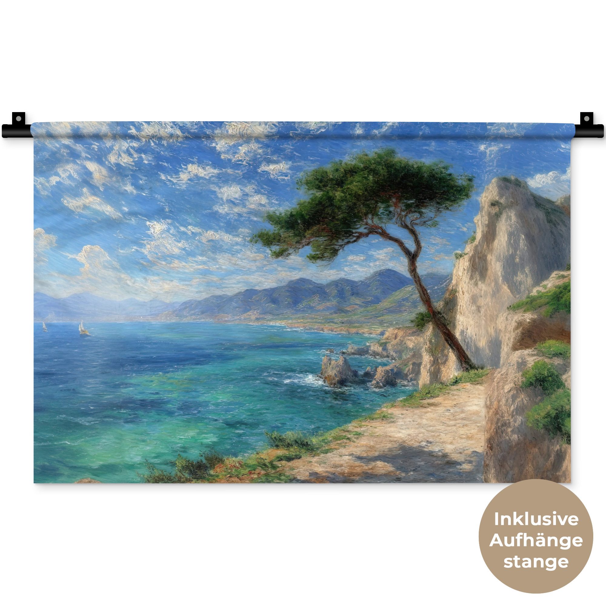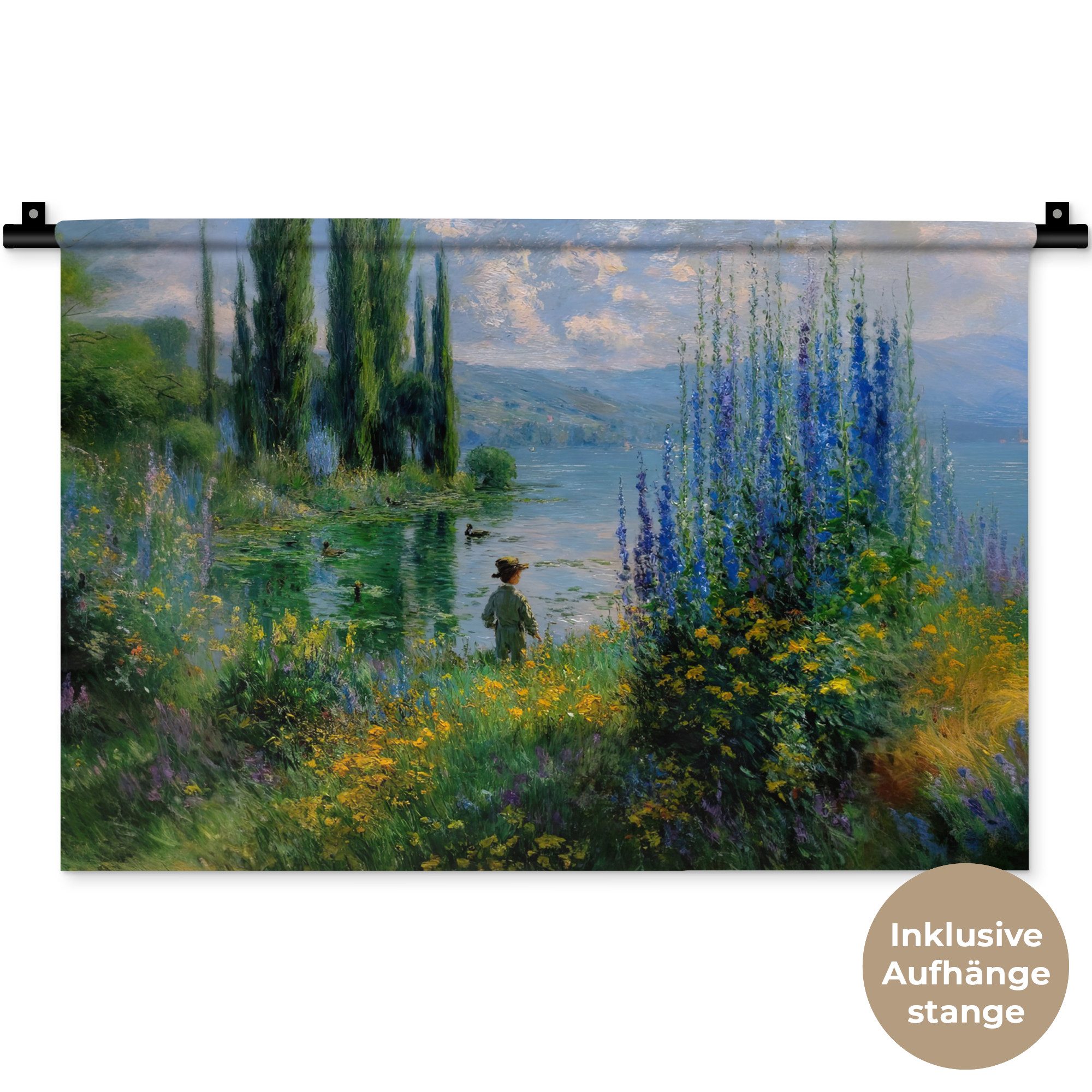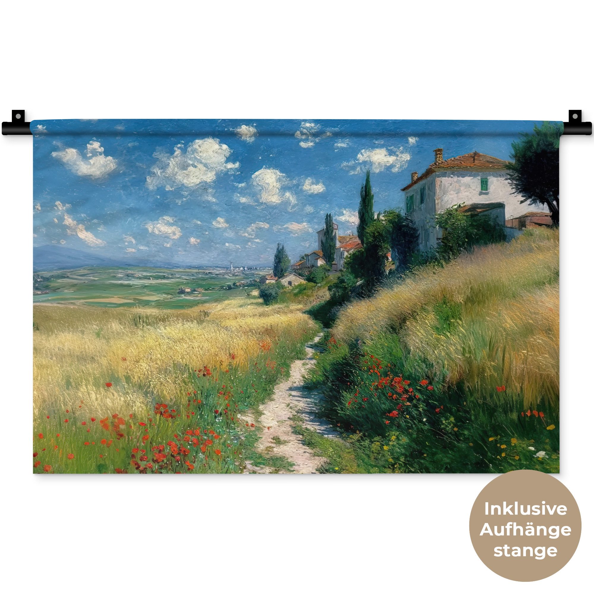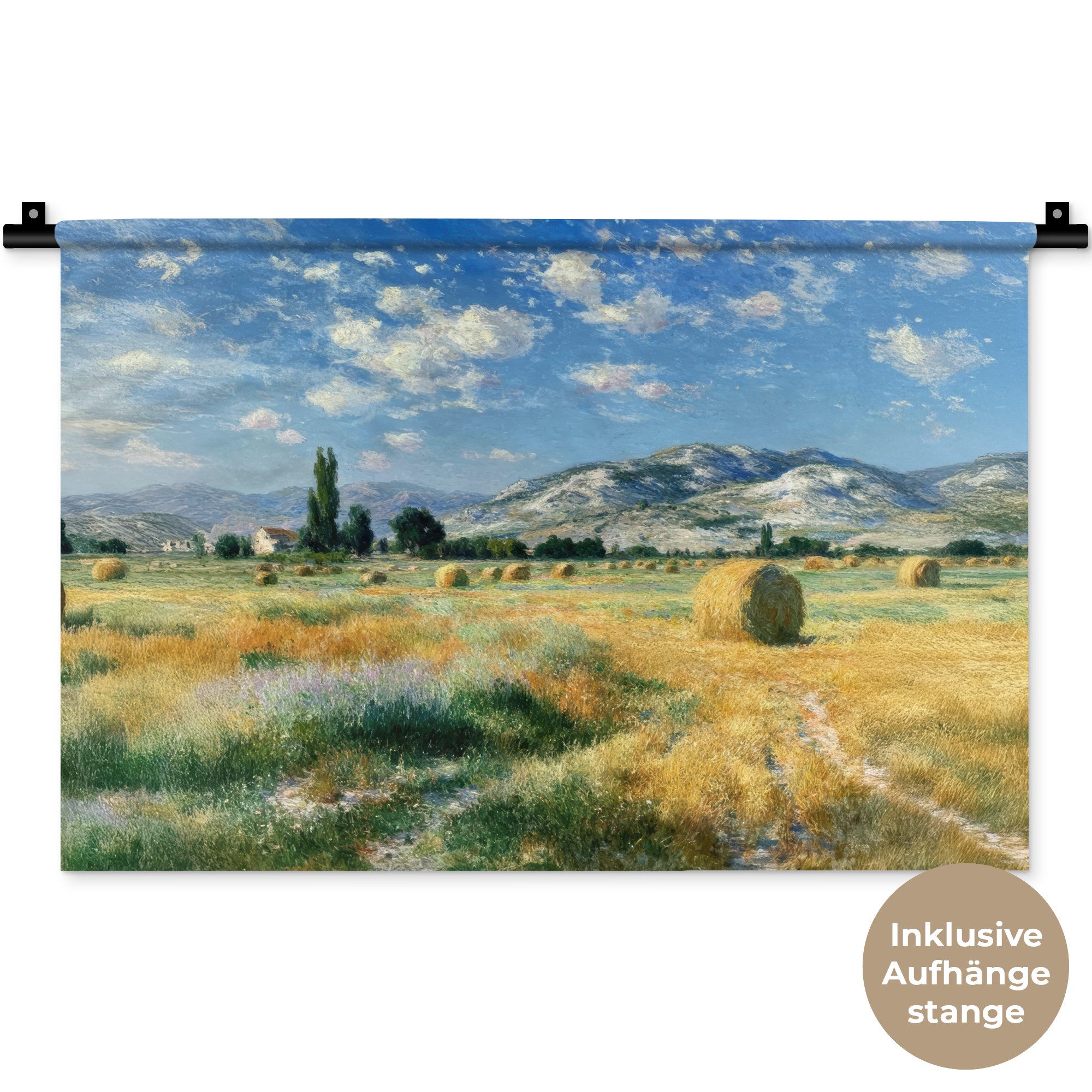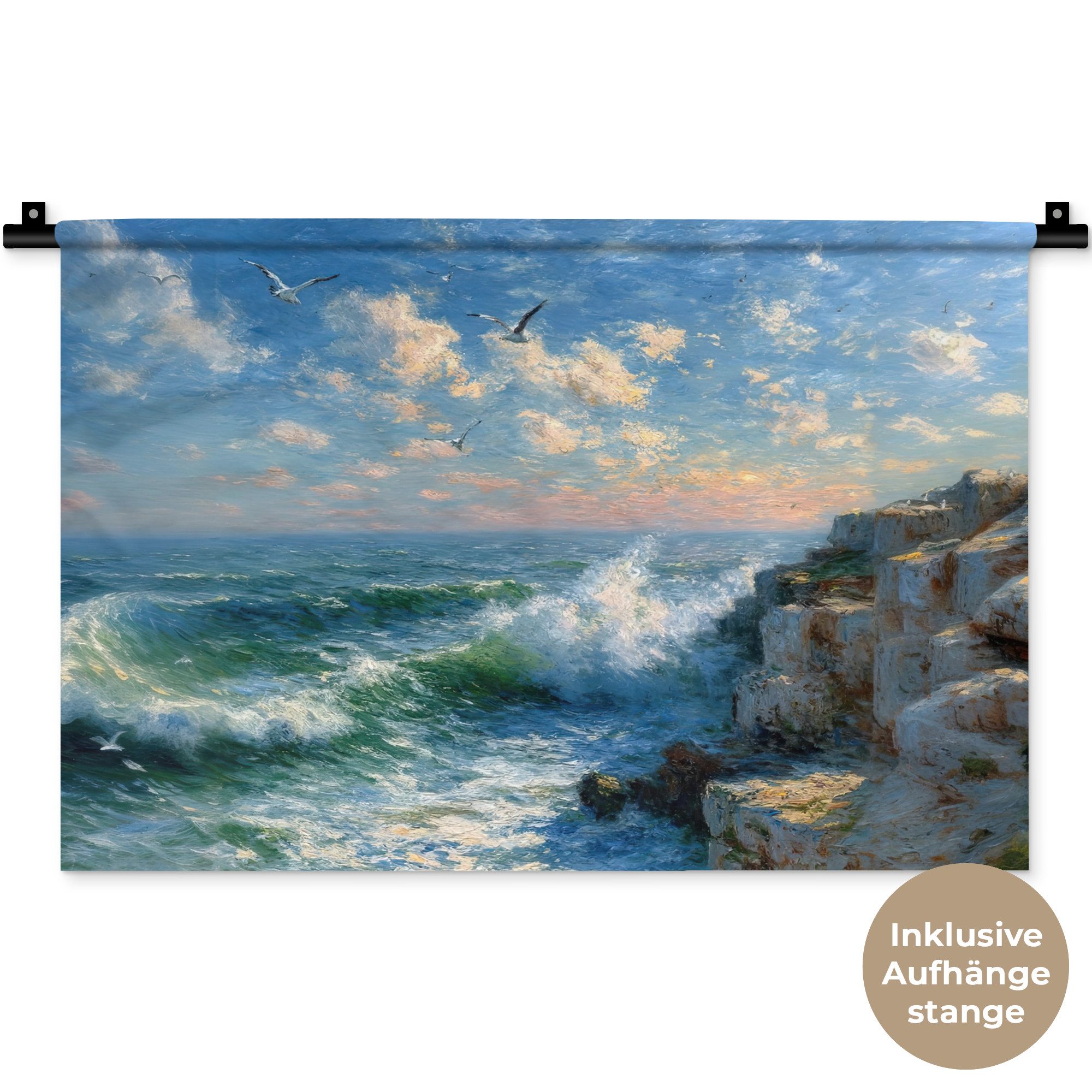 Der Wandteppich besteht aus robustem und strapazierfähigem Material. Er eignet sich hervorragend, um Ihrem Zuhause zusätzliche Atmosphäre und Wärme zu verleihen. Der Druck ist gestochen scharf mit leuchtenden Farben und sorgt für eine beeindruckende Wirkung. Die mitgelieferte Aufhängestange macht das Anbringen besonders einfach.