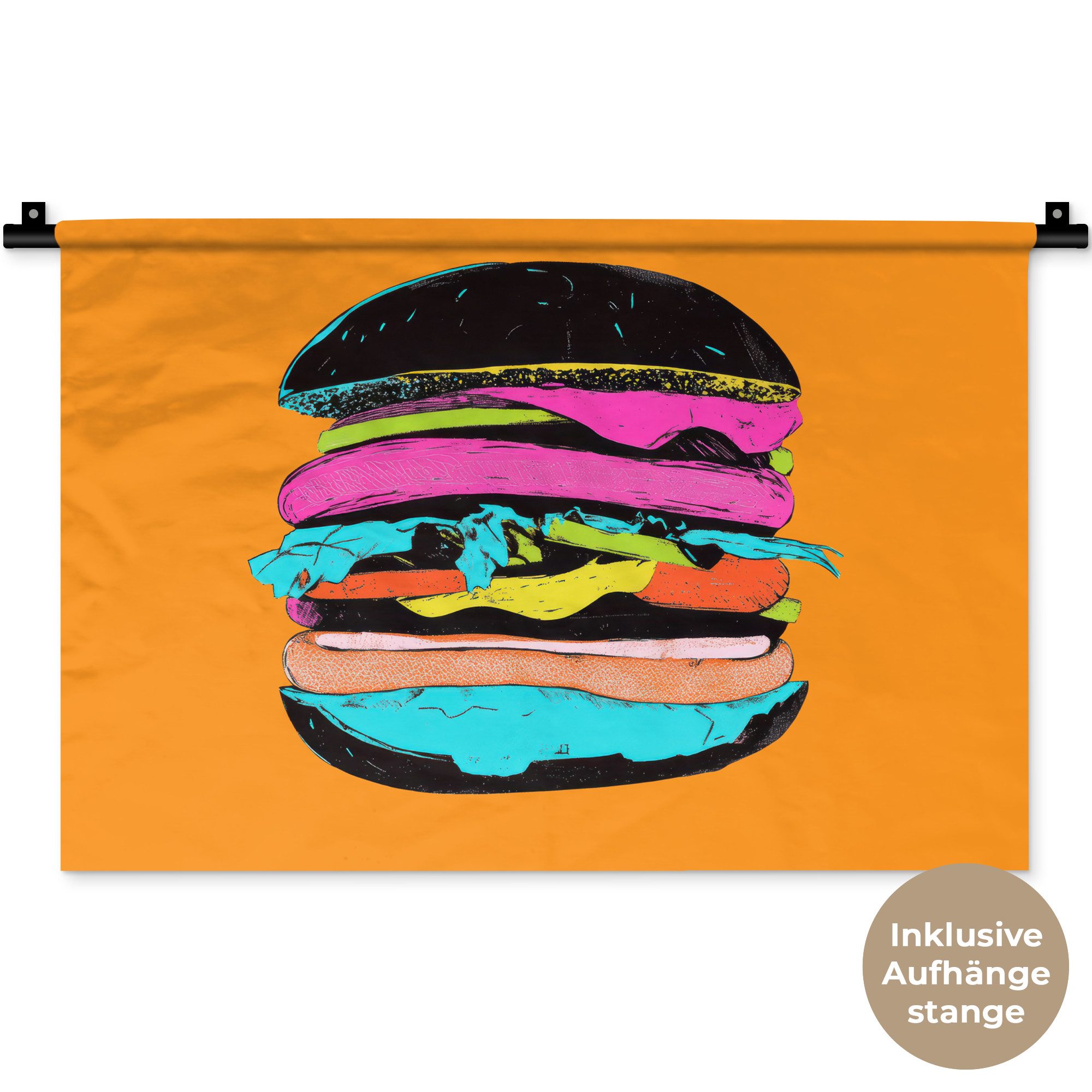 Der Wandteppich besteht aus robustem und strapazierfähigem Material. Er eignet sich hervorragend, um Ihrem Zuhause zusätzliche Atmosphäre und Wärme zu verleihen. Der Druck ist gestochen scharf mit leuchtenden Farben und sorgt für eine beeindruckende Wirkung. Die mitgelieferte Aufhängestange macht das Anbringen besonders einfach.