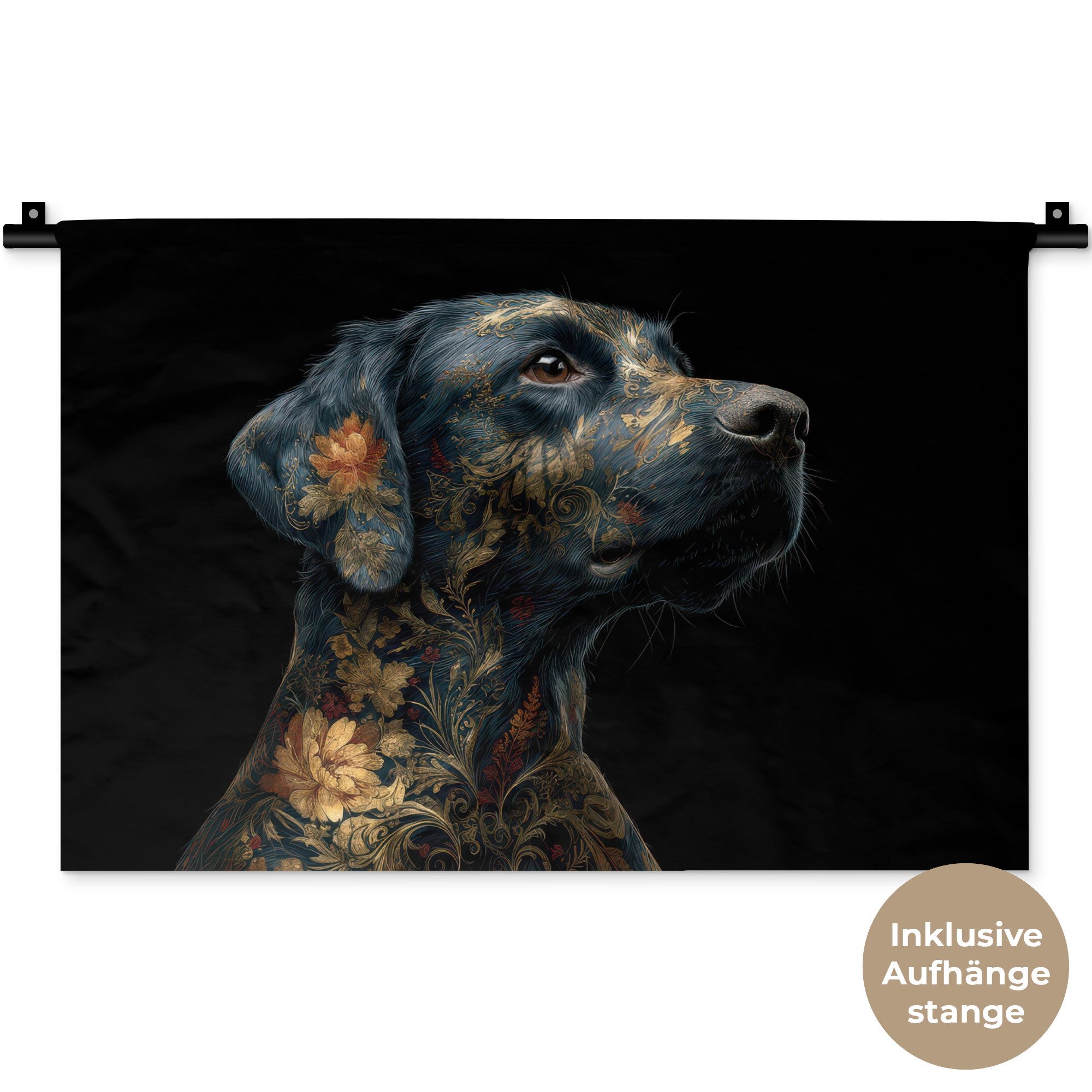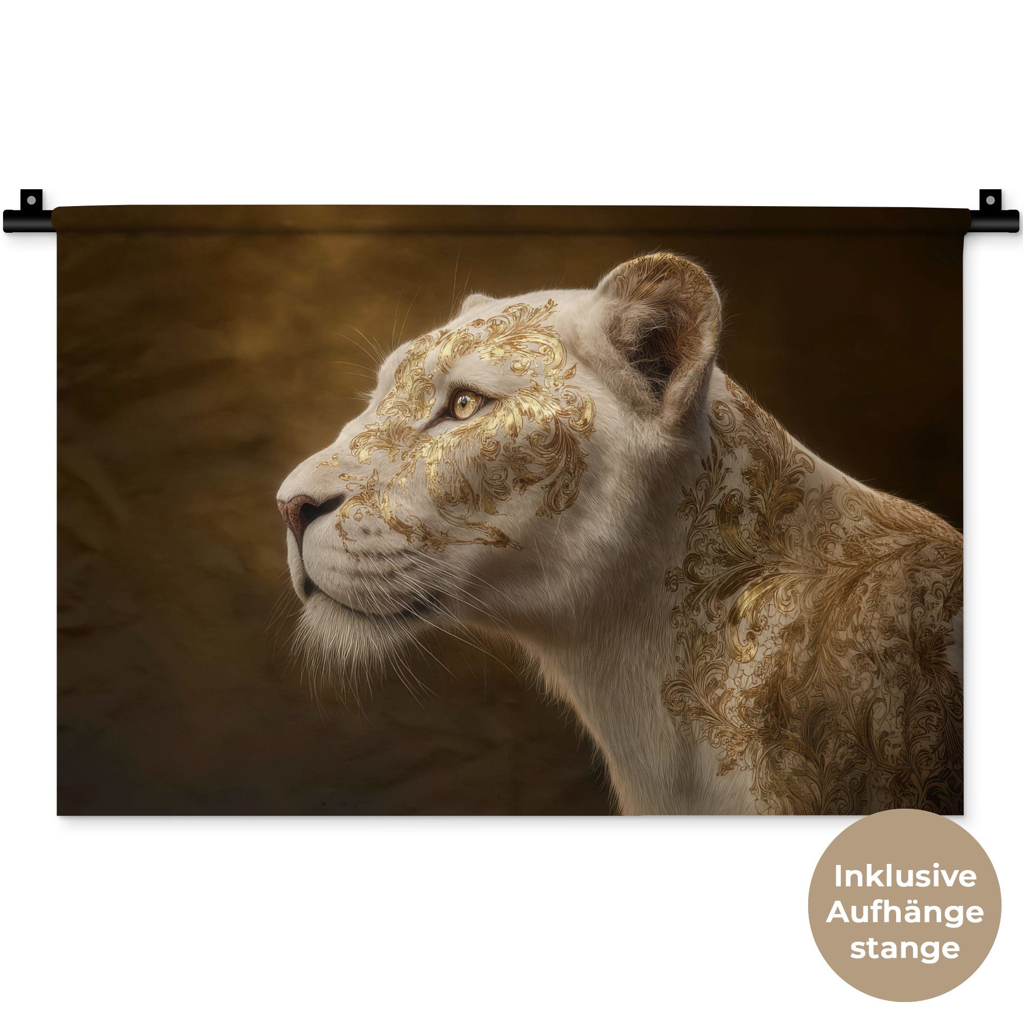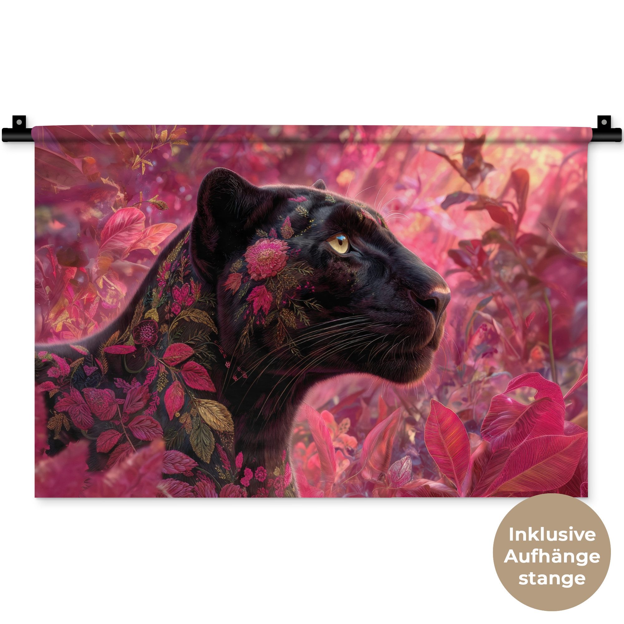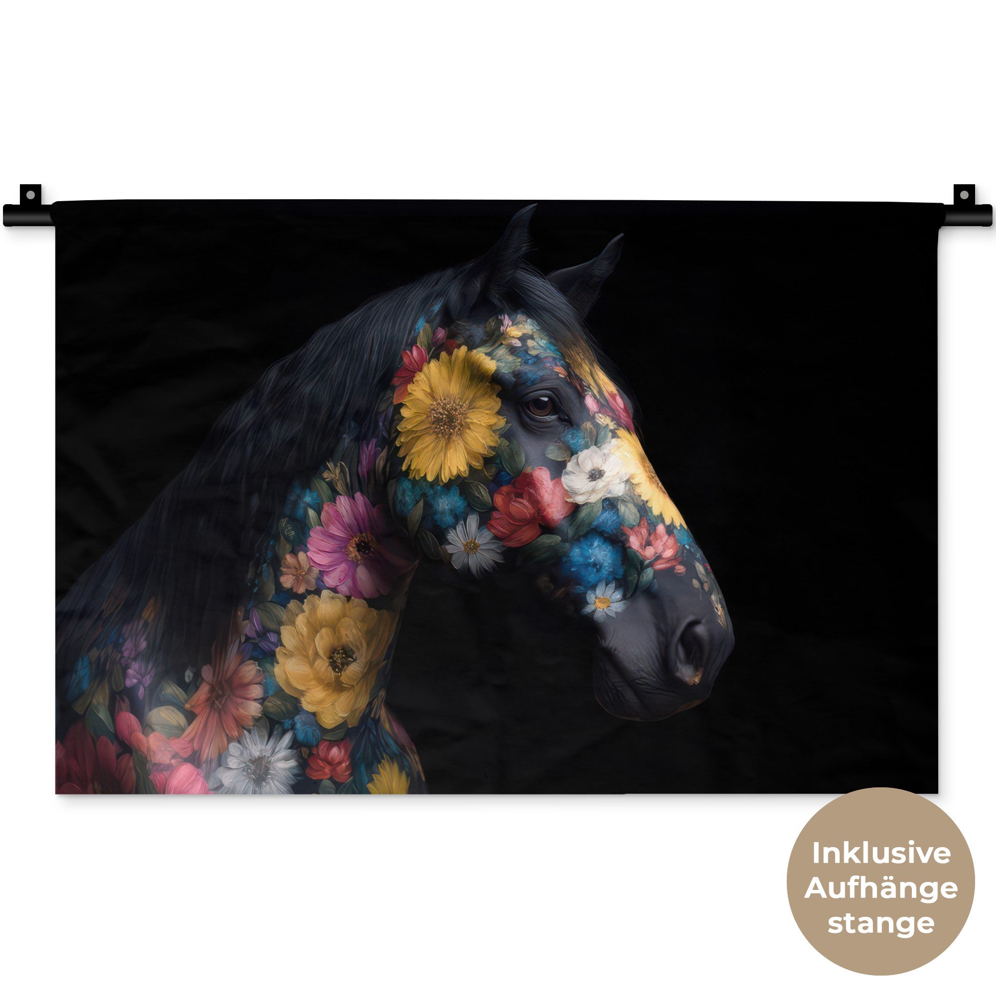 Der Wandteppich besteht aus robustem und strapazierfähigem Material. Er eignet sich hervorragend, um Ihrem Zuhause zusätzliche Atmosphäre und Wärme zu verleihen. Der Druck ist gestochen scharf mit leuchtenden Farben und sorgt für eine beeindruckende Wirkung. Die mitgelieferte Aufhängestange macht das Anbringen besonders einfach.