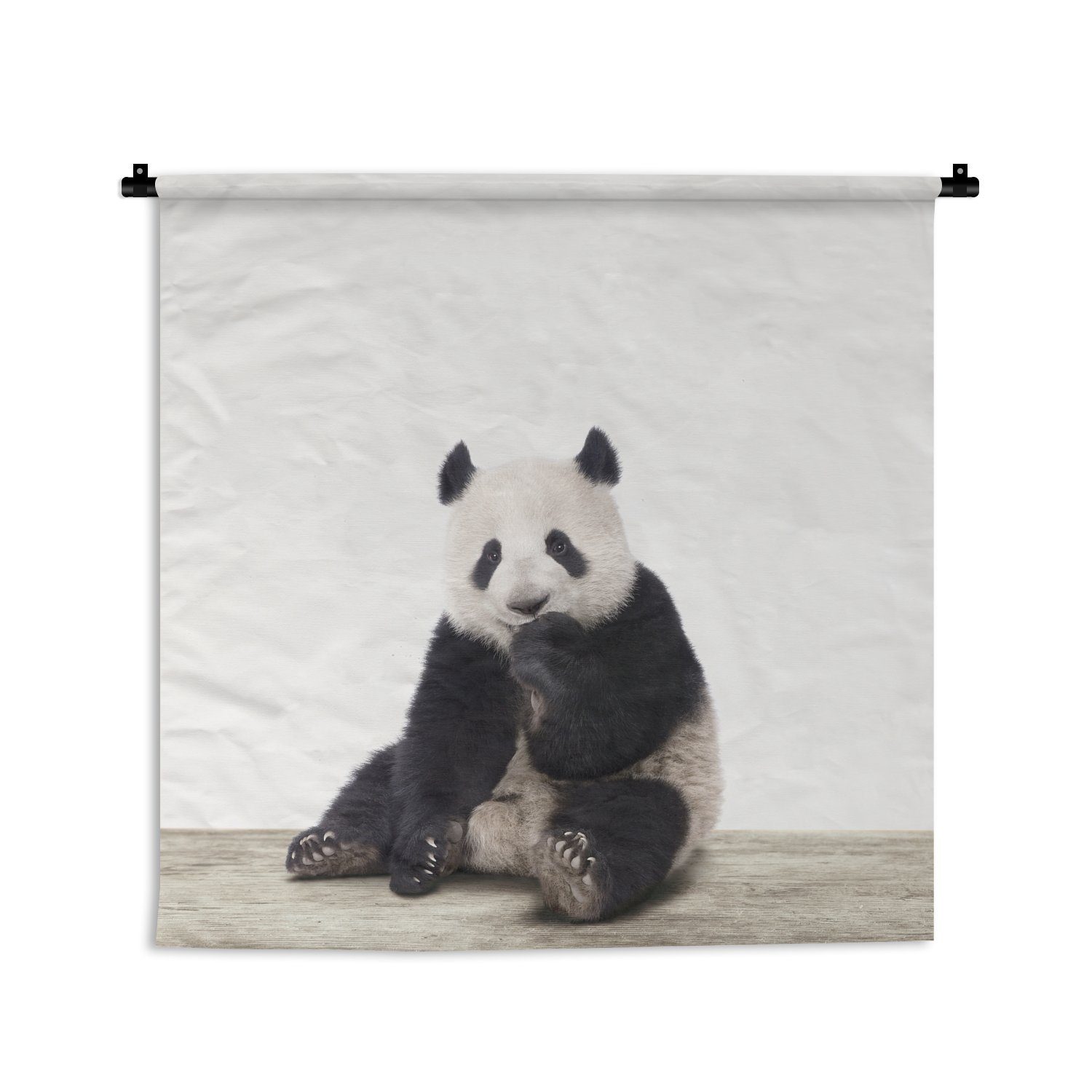 Porträt eines Pandabären vor einem weißen Hintergrund.