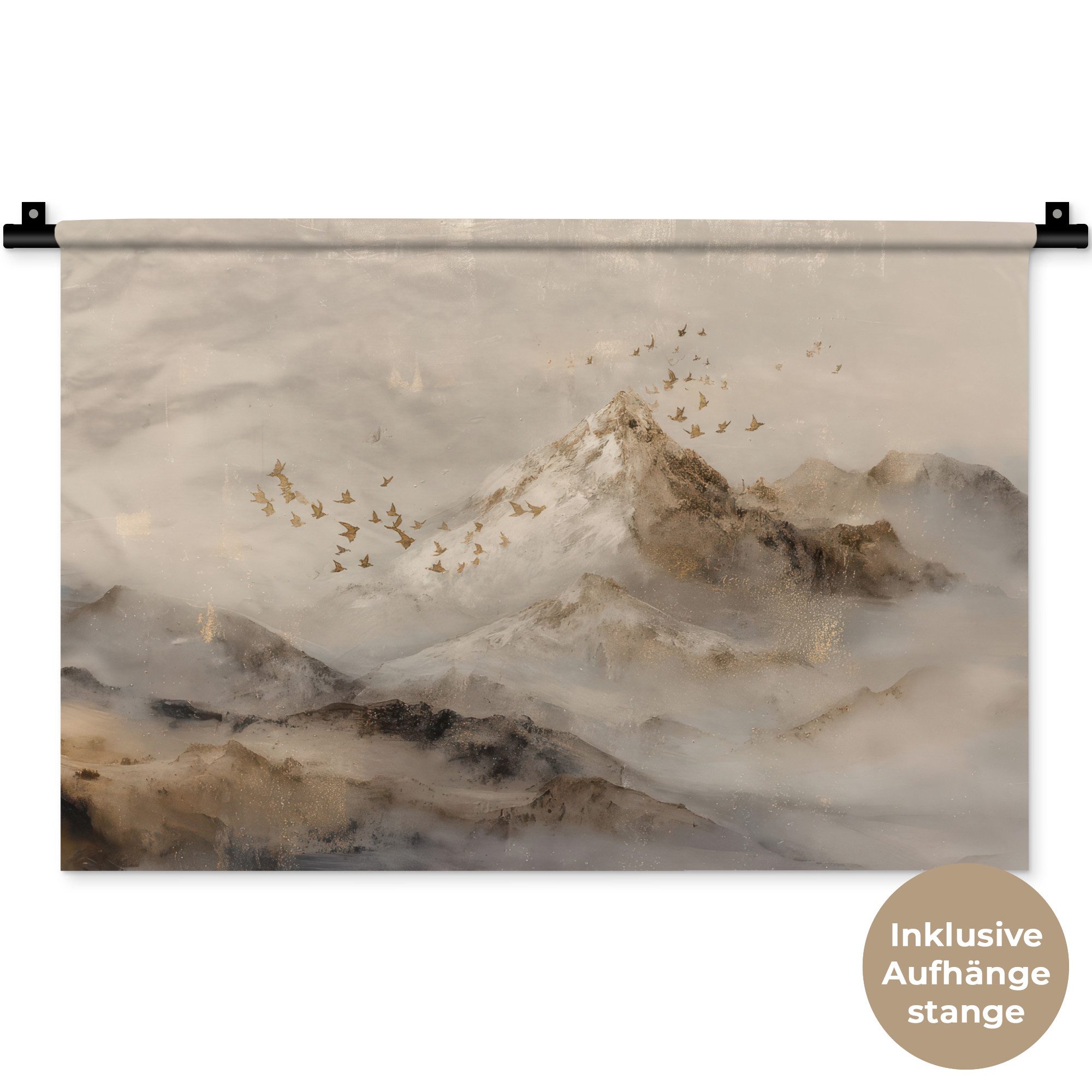 Der Wandteppich besteht aus robustem und strapazierfähigem Material. Er eignet sich hervorragend, um Ihrem Zuhause zusätzliche Atmosphäre und Wärme zu verleihen. Der Druck ist gestochen scharf mit leuchtenden Farben und sorgt für eine beeindruckende Wirkung. Die mitgelieferte Aufhängestange macht das Anbringen besonders einfach.